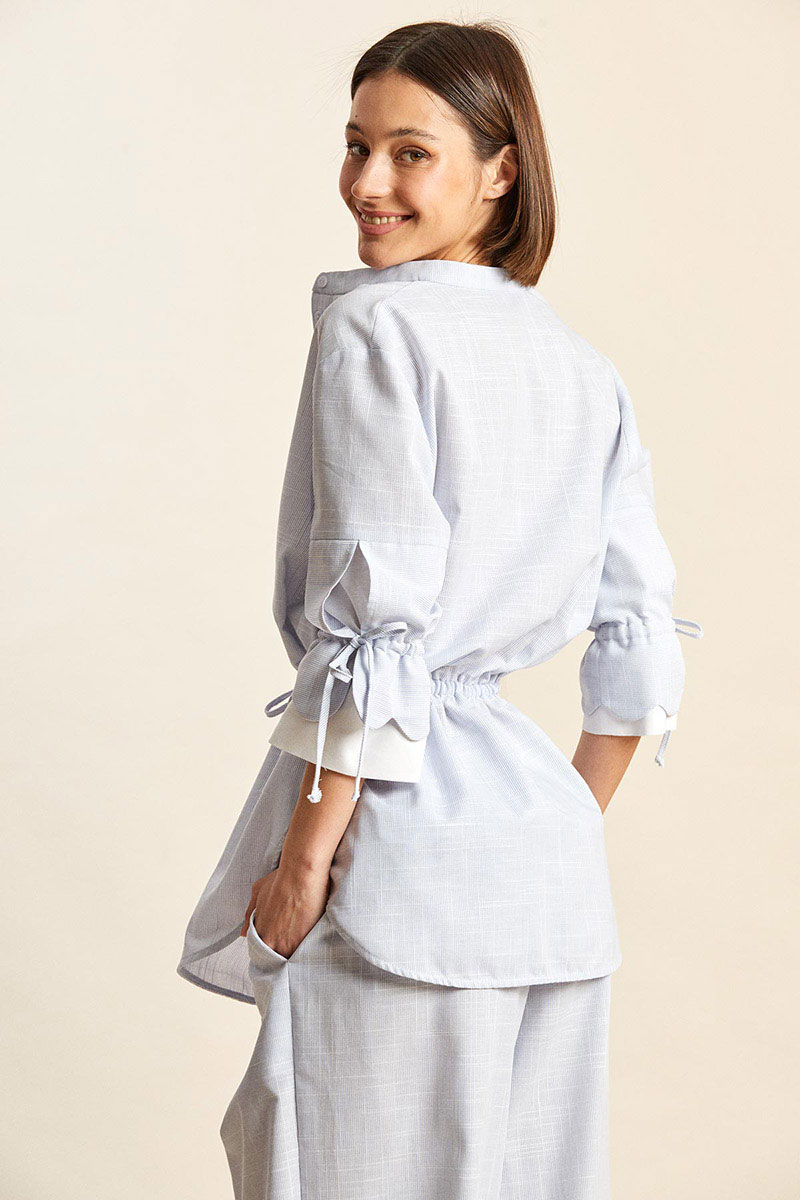 - рукава втачные, укороченные, горизонтально отрезные, нижние части двойные;