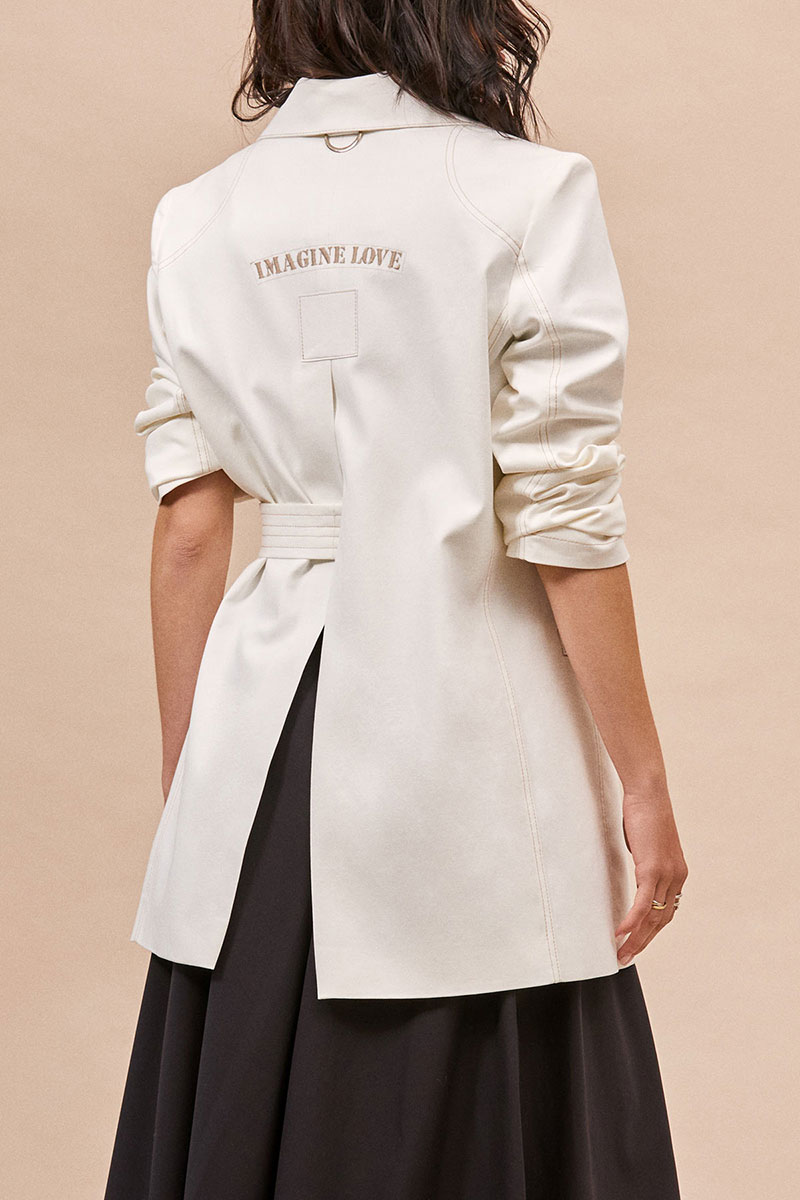- сзади вышивка и кожаная аппликация с логотипом бренда и пата с полукольцом