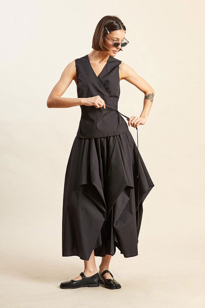 - спереди застежка на запах и тонкие завязки на талии.