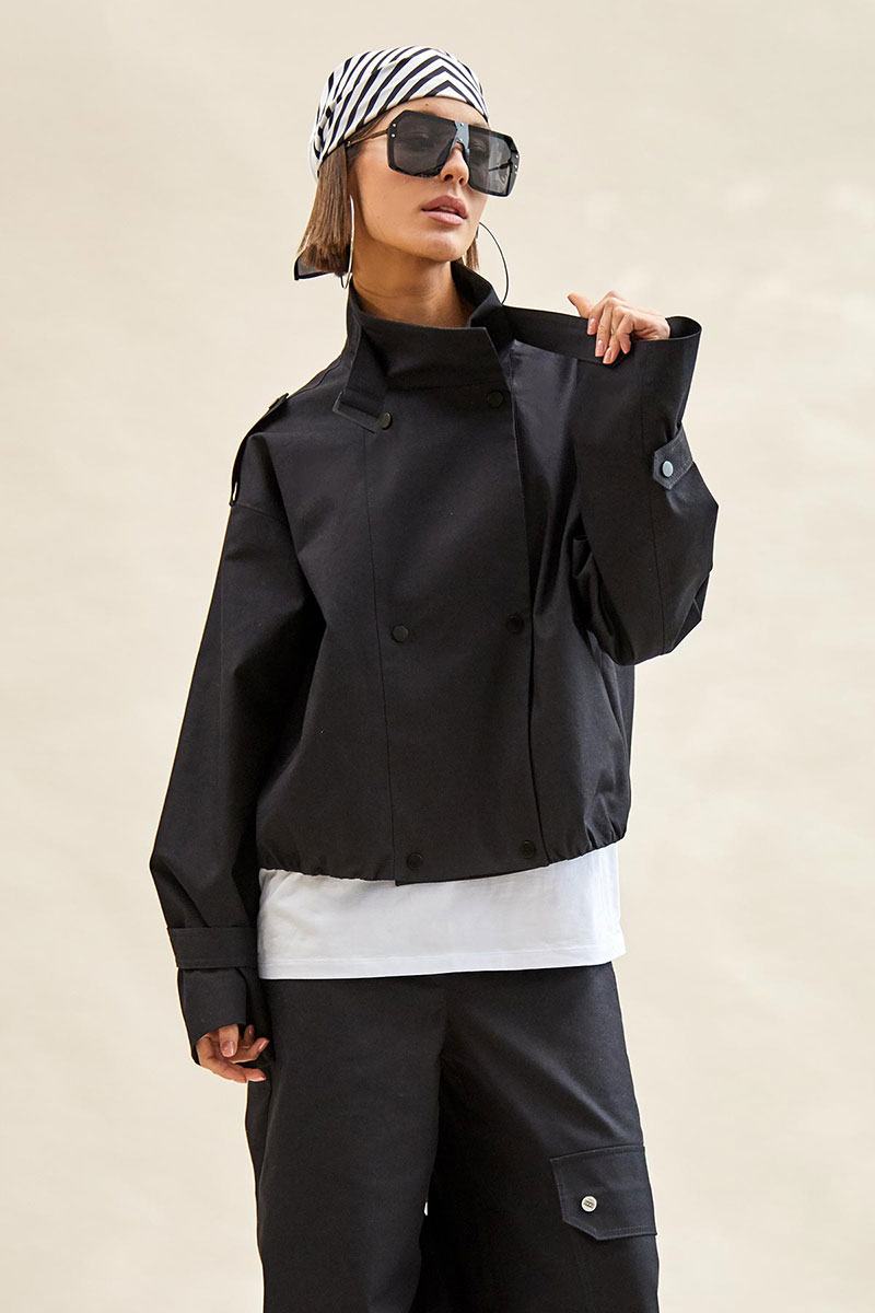 - воротник-стойка с патами, застегивающимися на прямоугольную пряжку;