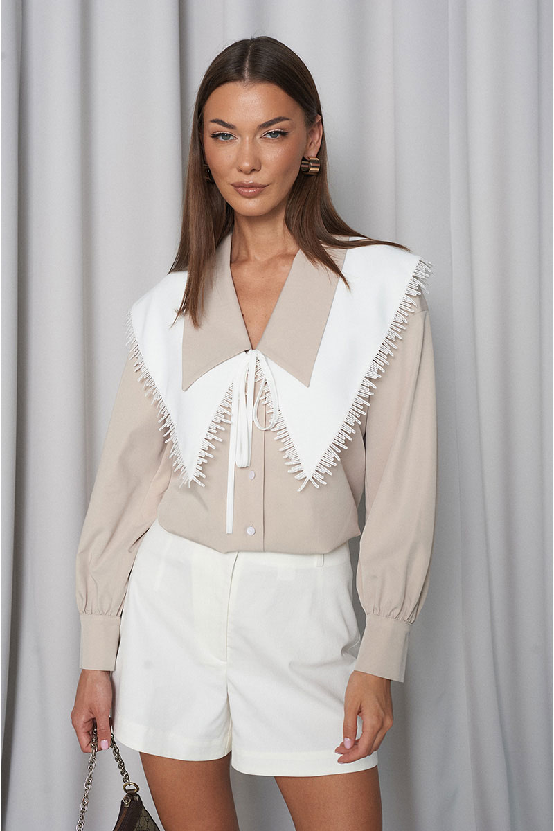 Шорты женские, короткие, слегка расширенные к низу. На поясе расположены шлёвки. На задней половине шорт расположены накладные карманы. Застёгиваются на молнию, крючки и потайную кнопку. Шорты минималистичные, прекрасно подойдут к любому образу!