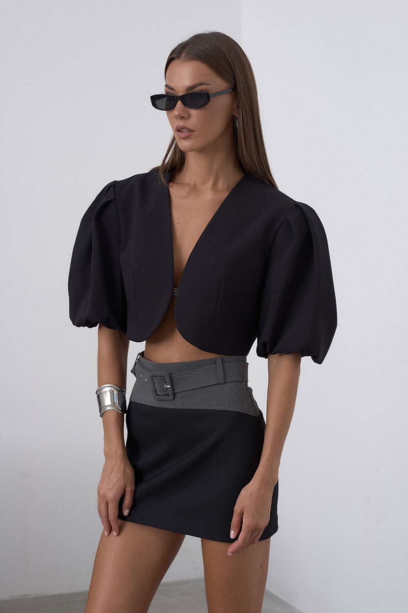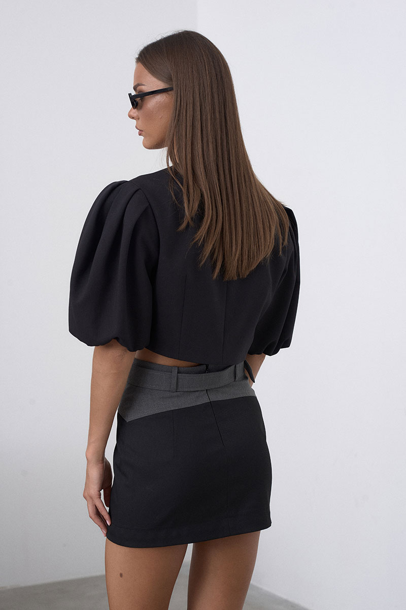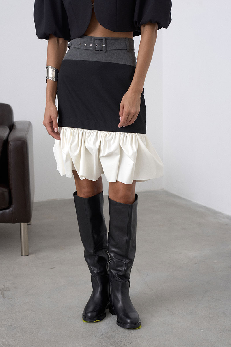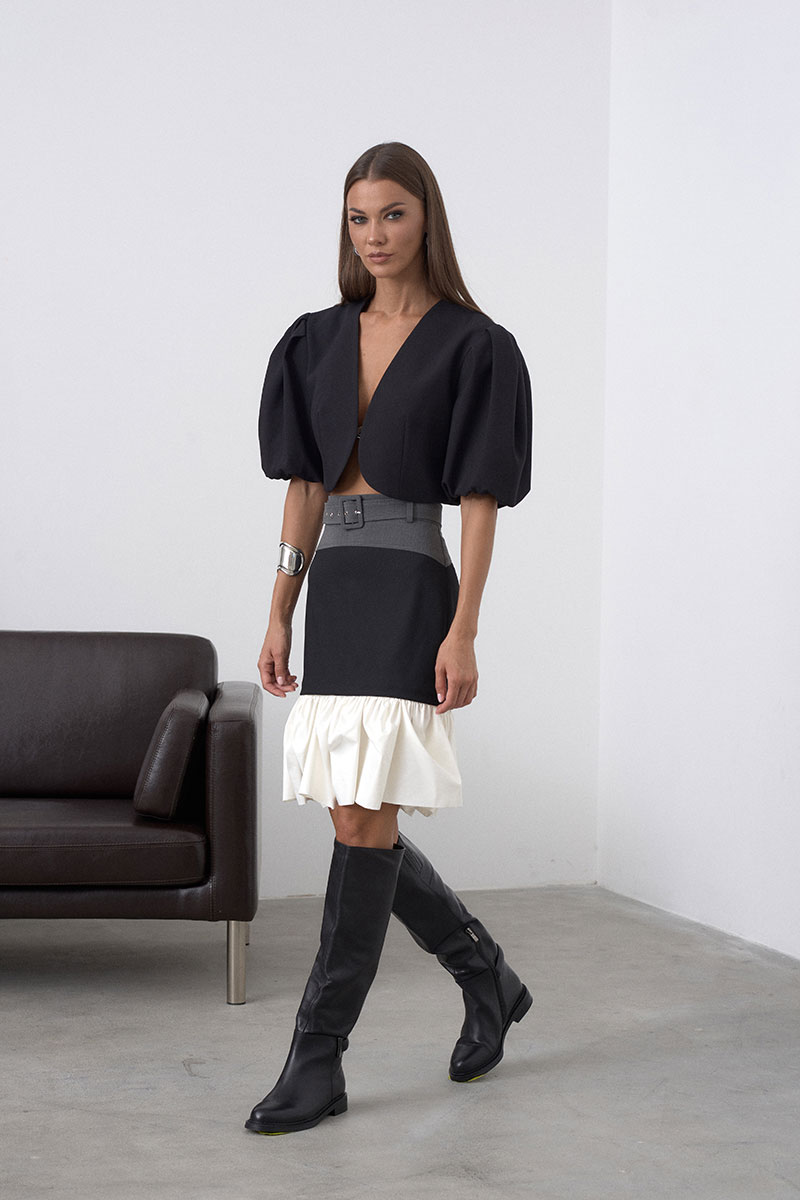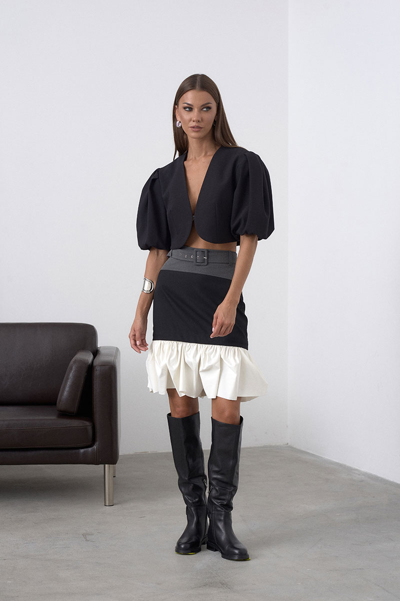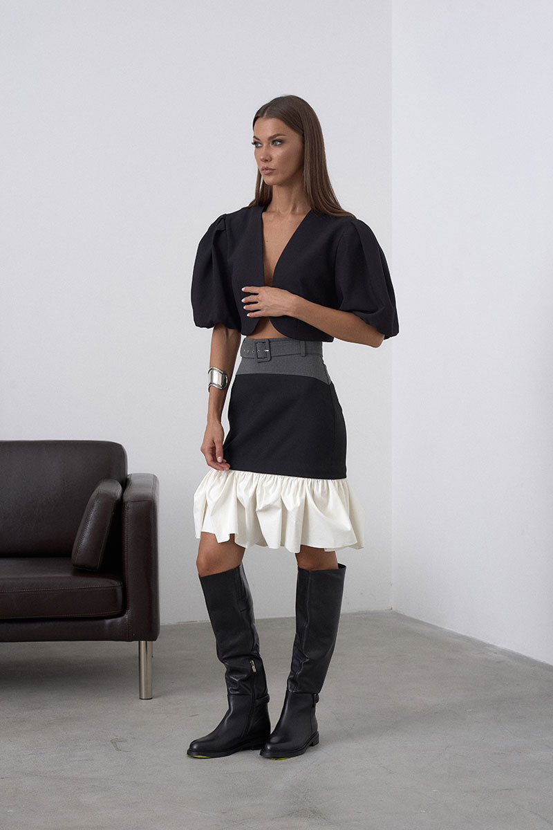 Укороченная юбка с кокеткой и декоративным поясом отличный вариант для этой осени! Нижний буф юбки (молочный) отстёгивается, и получается, классическая мини, с буфом же создаётся