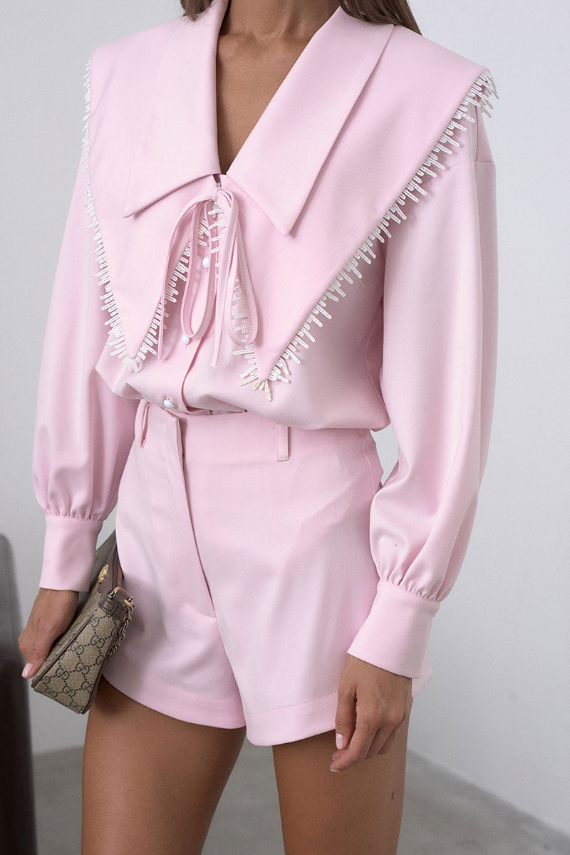 Шорты короткие, слегка расширенные к низу. На поясе расположены шлёвки. На задней половине шорт расположены накладные карманы. Шорты минималистичные, прекрасно подходят к любому образу.
