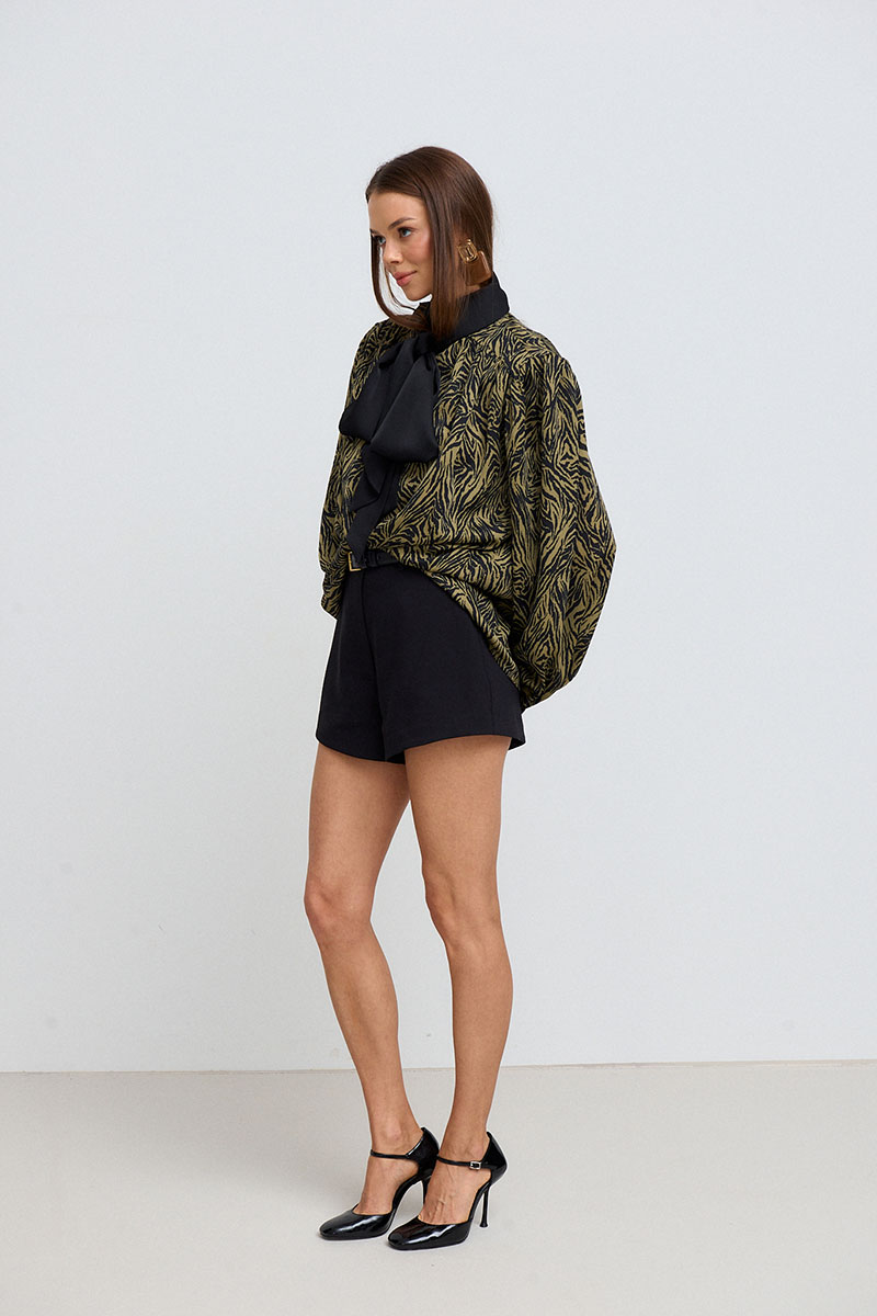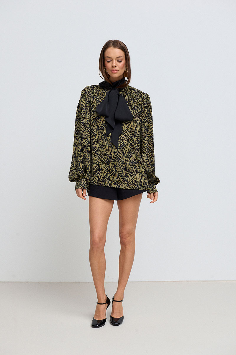 декоративным шарфом, который вы можете завязать так, как подходит именно вам. Блуза представлена с шортами SHAM SHAM
