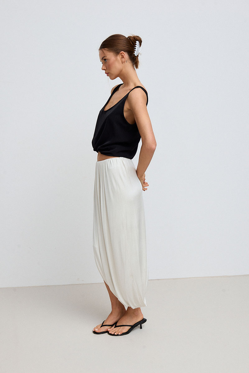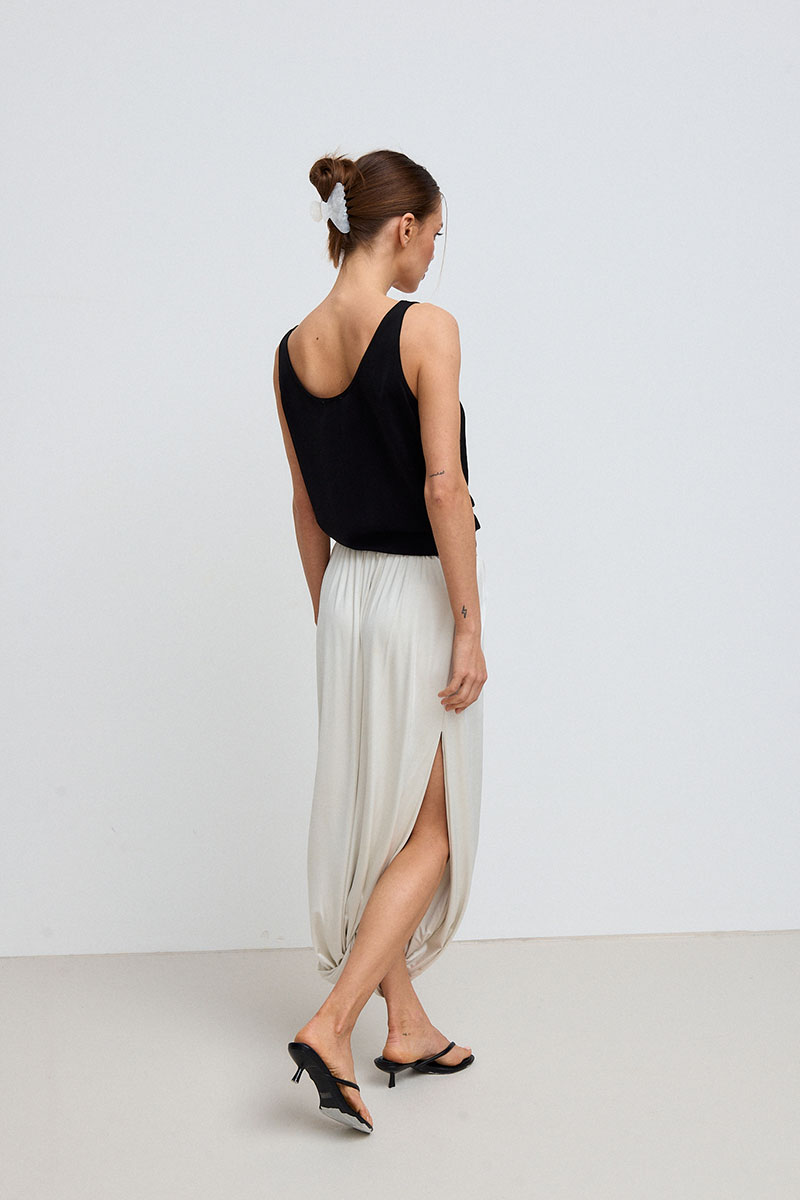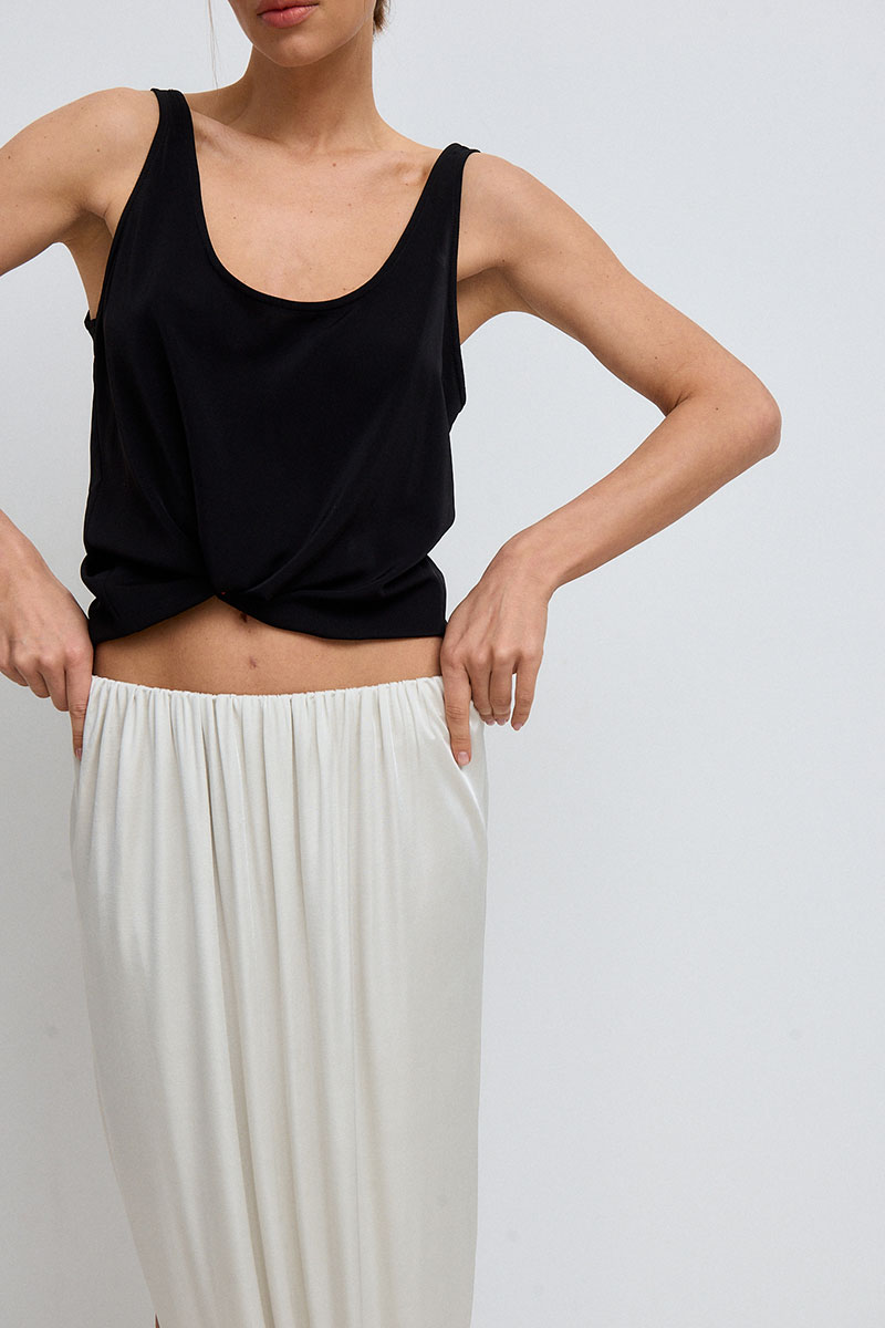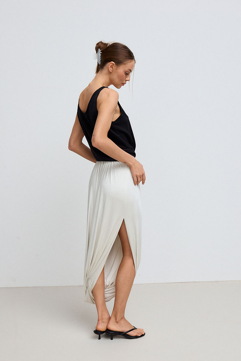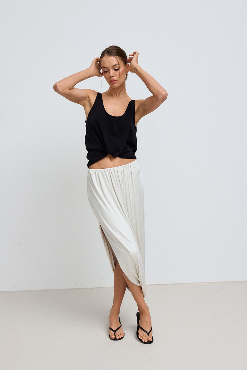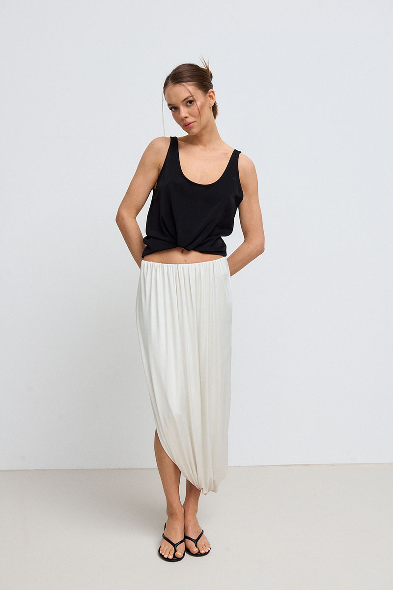 Юбка в длине миди, на резинке по талии, с драпировками по всей длине. Юбка представлена с топом SHAM SHAM артикул 1081.01.