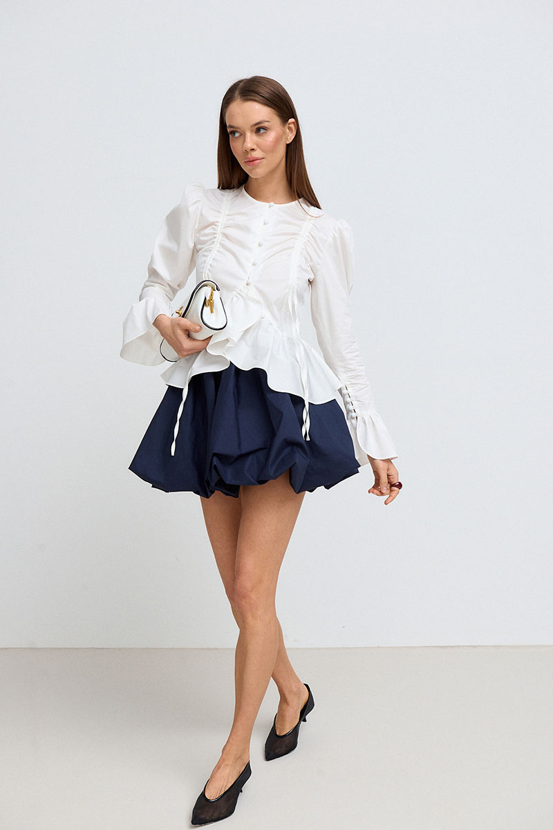 Юбка-баллон в длине мини, на подкладке. Пояс на резинке.