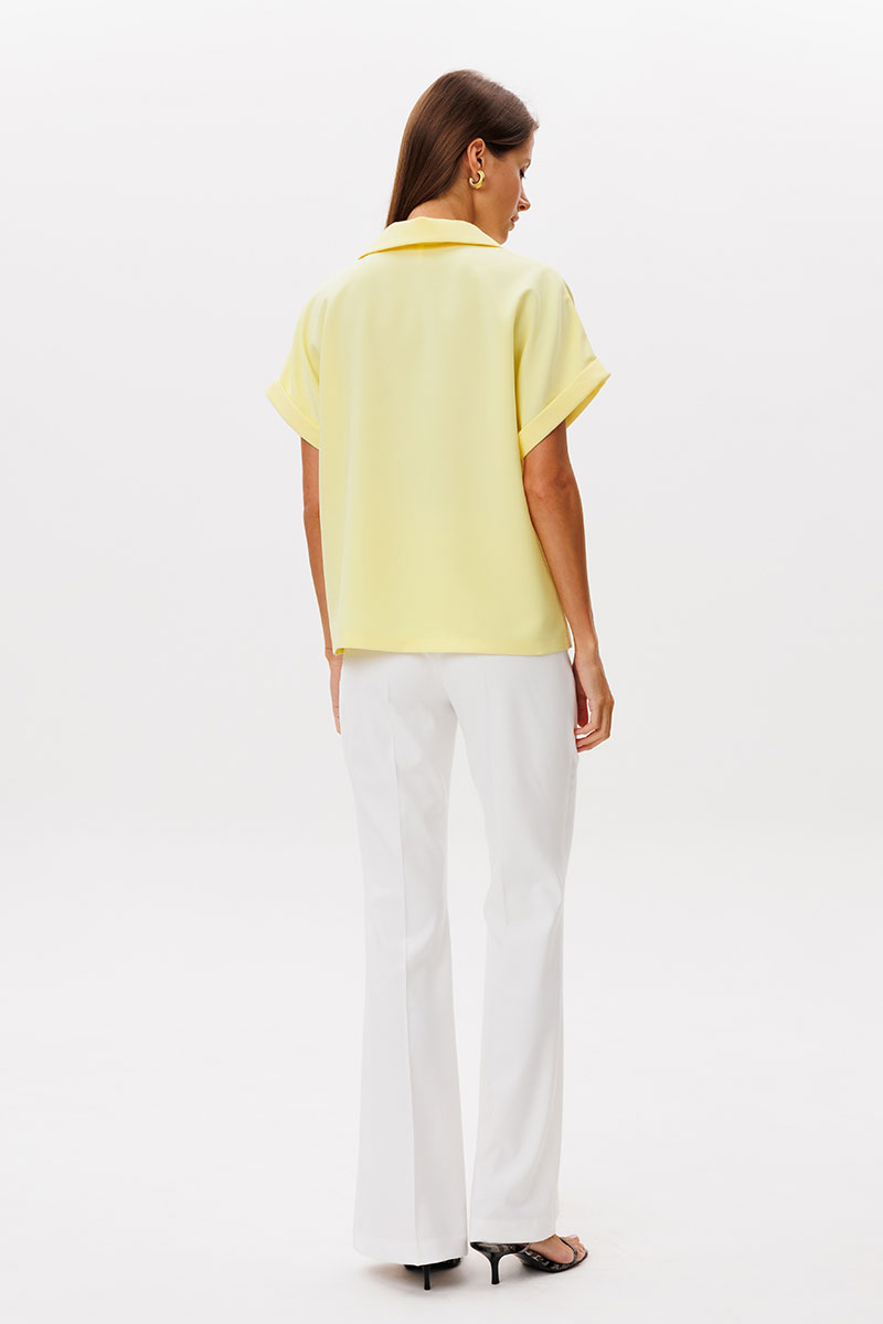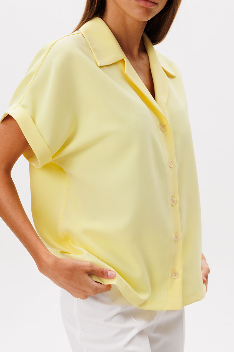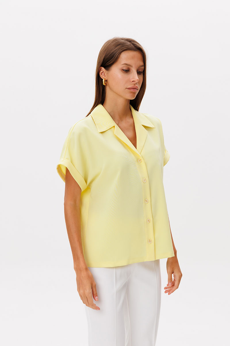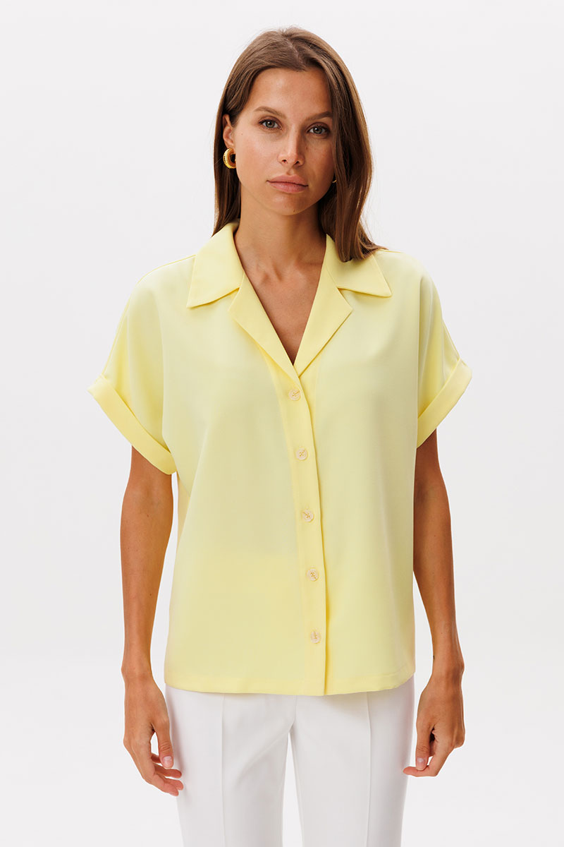 Легкая рубашка станет идеальным дополнением к Вашему повседневному гардеробу. Эта модель прекрасно сочетается с разным низом, будь то офисные брюки или любимые джинсы, юбка или шорты.Женская блуза с коротким рукавом характеризует: лаконичный прямой крой, воротник отложной , рукав цельный, подвернут, по переду отстроченная планка , застежка на петли-пуговицы.