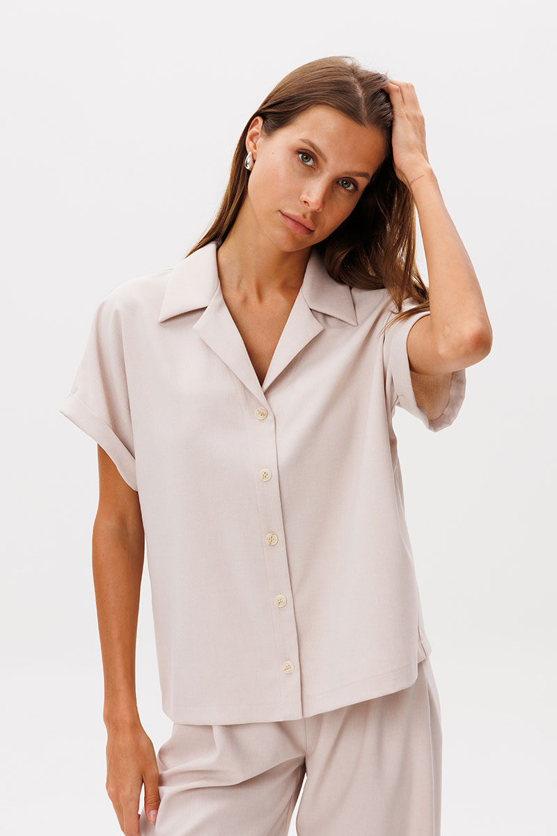 Легкая рубашка станет идеальным дополнением к Вашему повседневному гардеробу. Эта модель прекрасно сочетается с разным низом, будь то офисные брюки или любимые джинсы, юбка или шорты.Женская блуза с коротким рукавом характеризует: лаконичный прямой крой, воротник отложной , рукав цельный, подвернут, по переду отстроченная планка , застежка на петли-пуговицы.