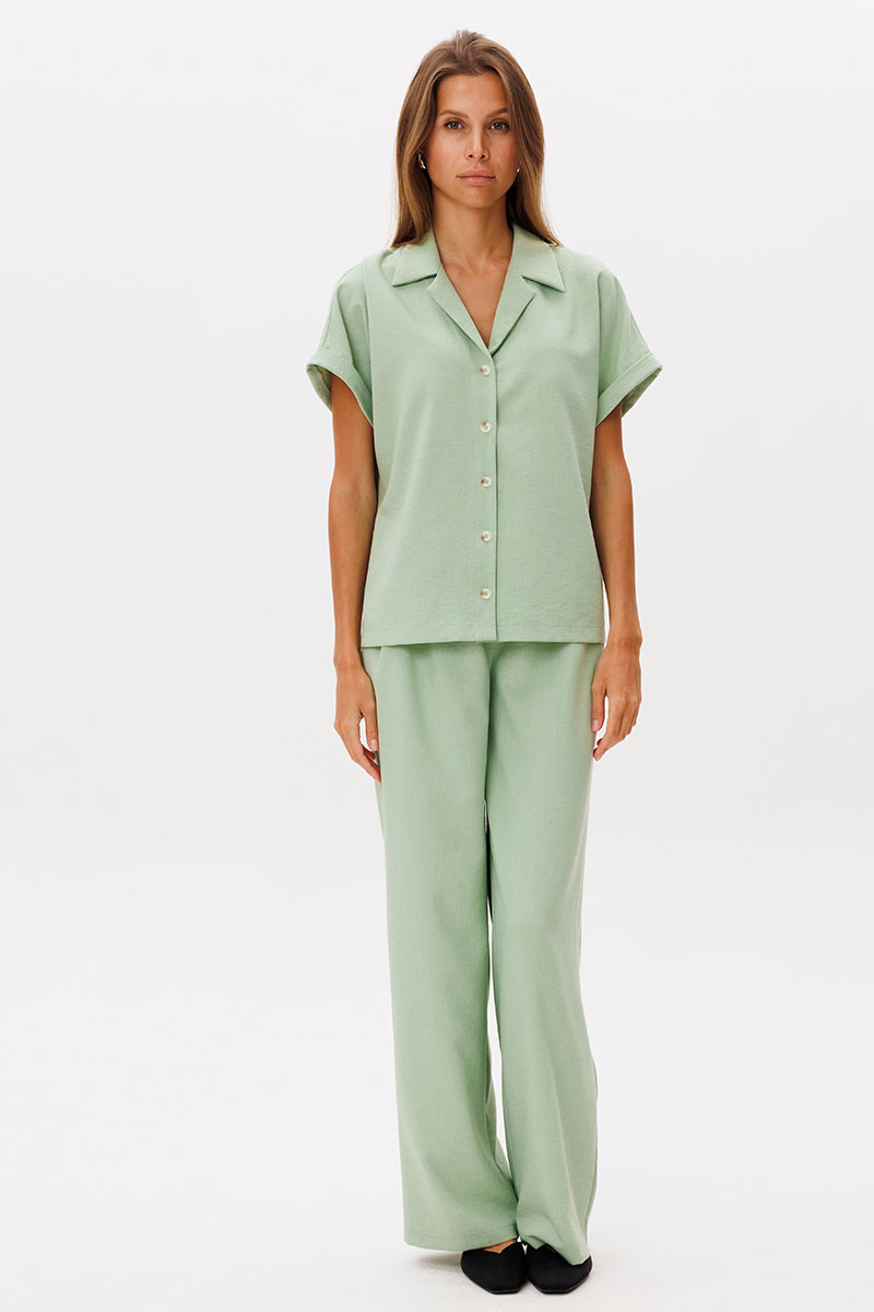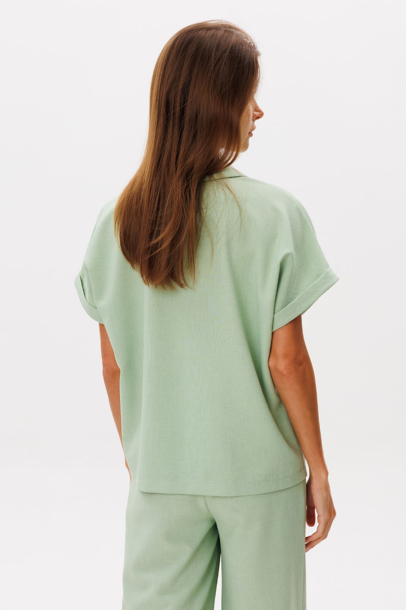 Легкая рубашка станет идеальным дополнением к Вашему повседневному гардеробу. Эта модель прекрасно сочетается с разным низом, будь то офисные брюки или любимые джинсы, юбка или шорты.Женская блуза с коротким рукавом характеризует: лаконичный прямой крой, воротник отложной , рукав цельный, подвернут, по переду отстроченная планка , застежка на петли-пуговицы.