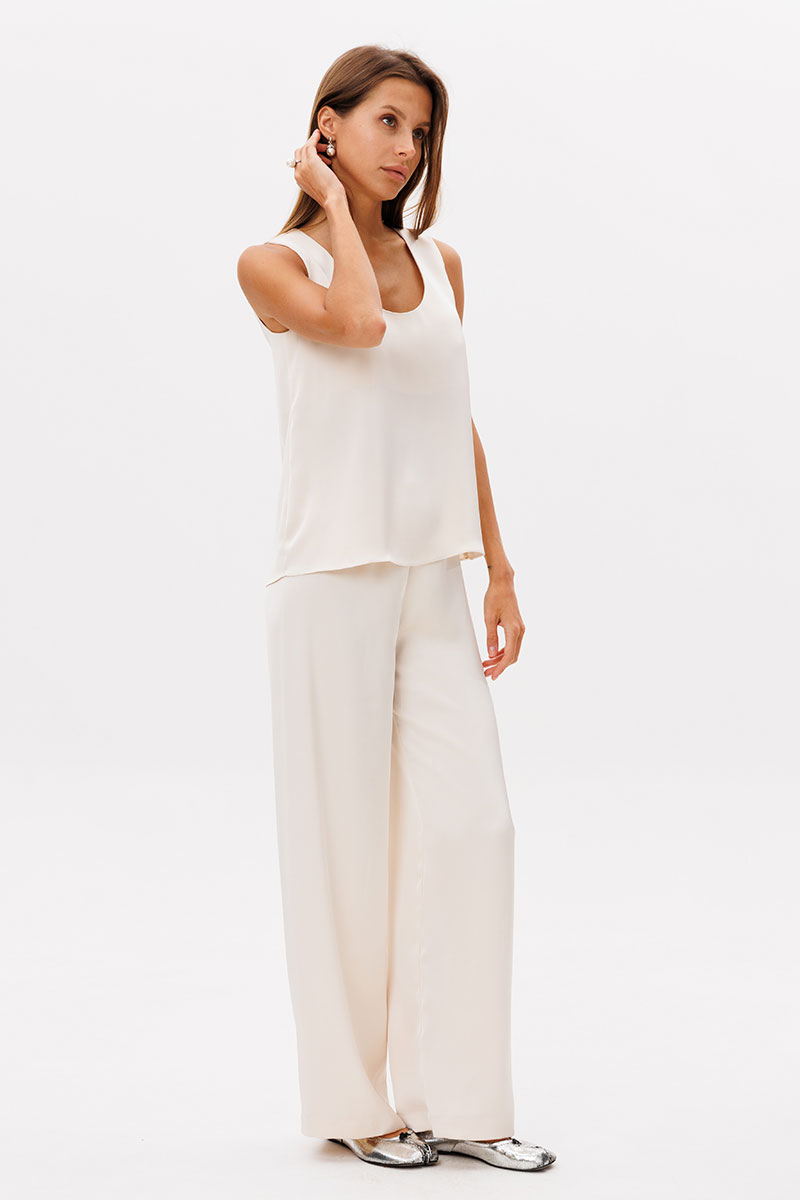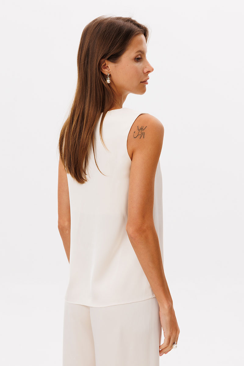 Базовый топ прямого кроя без рукава на обтачке по переду и спинке.
