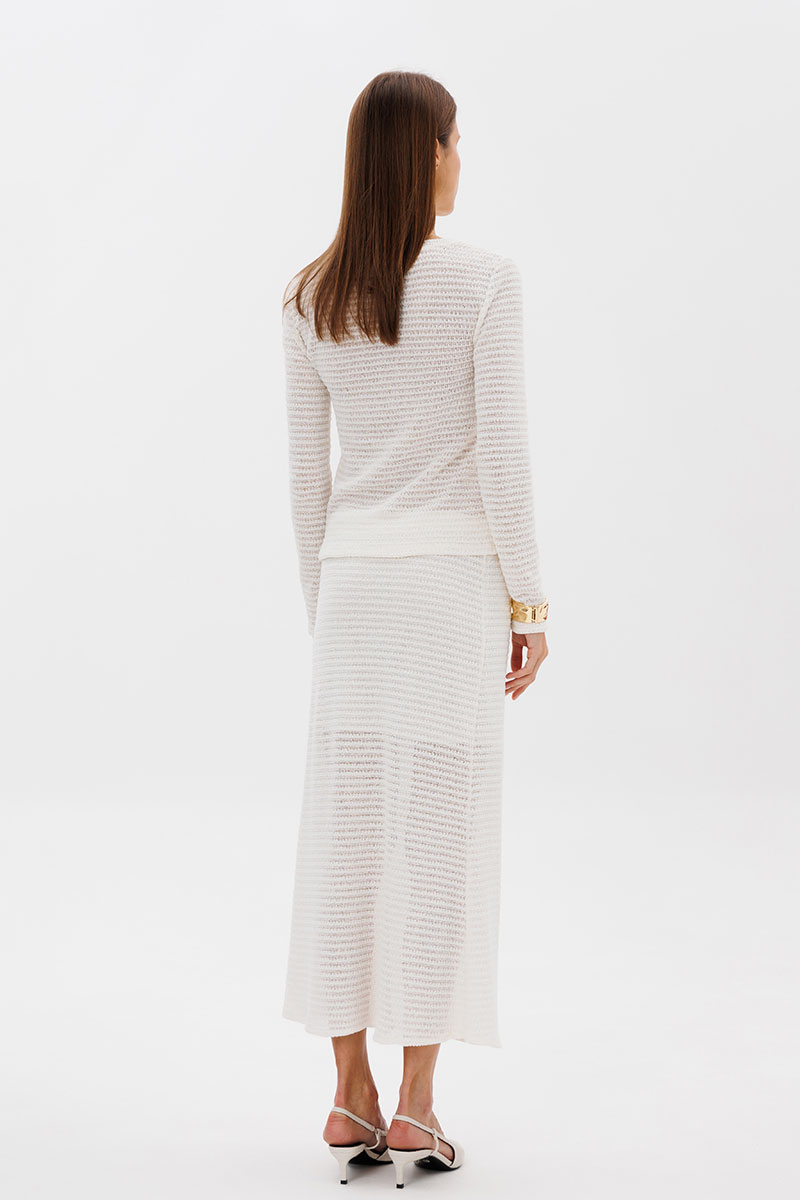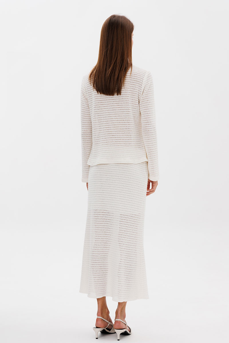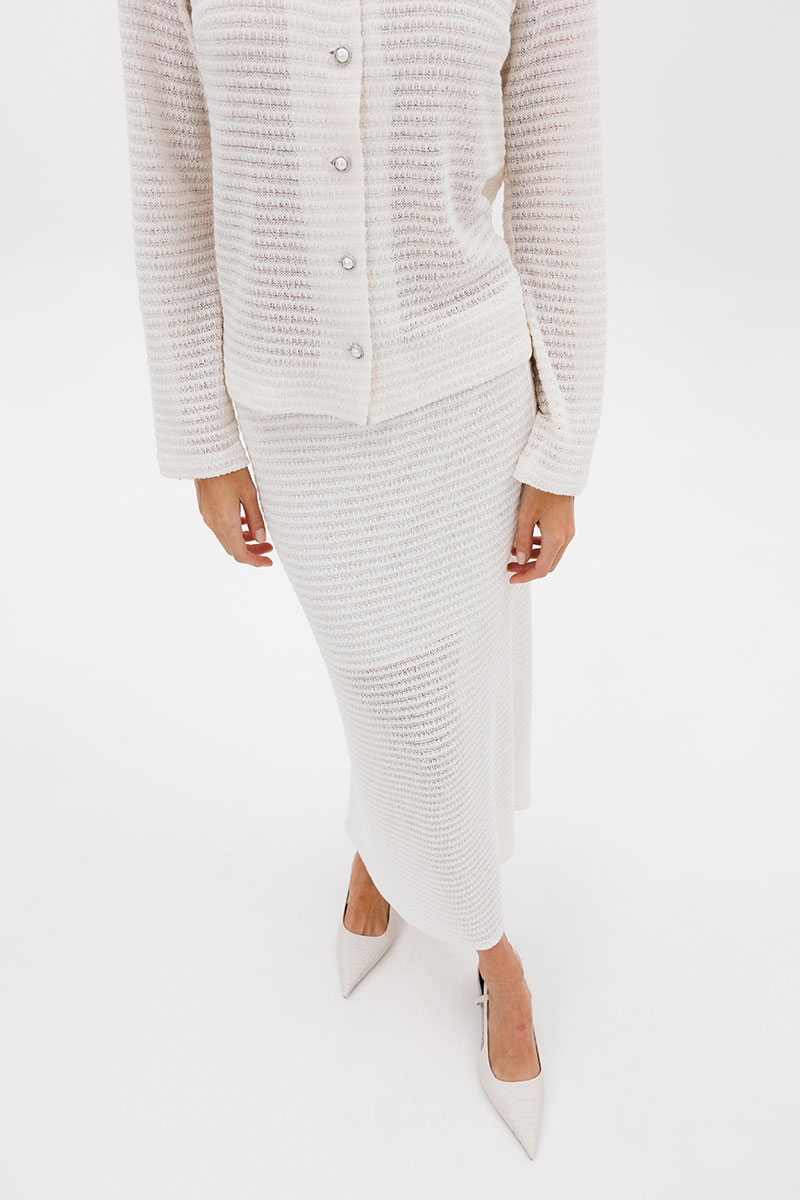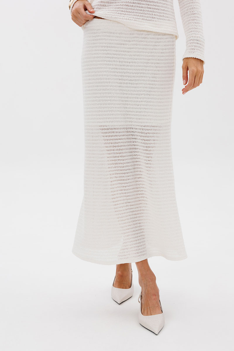 Трикотажная юбка молочного цвета по косой - это элегантная и женственная вещь, которая может стать основой стильного образа. Юбка на резинке, юбка на подкладке, полуприлегающего силуэта по косой, посадка высокая. Дополните образ джемпером из нашей коллекции арт 2373. Юбку можно сочетать сджемпером, атласной блузой, жакетами, рубашками, миксуя обувью различного стиля.
