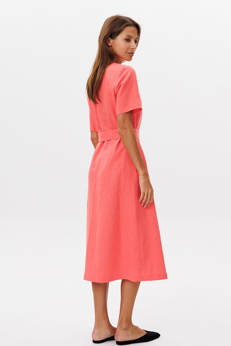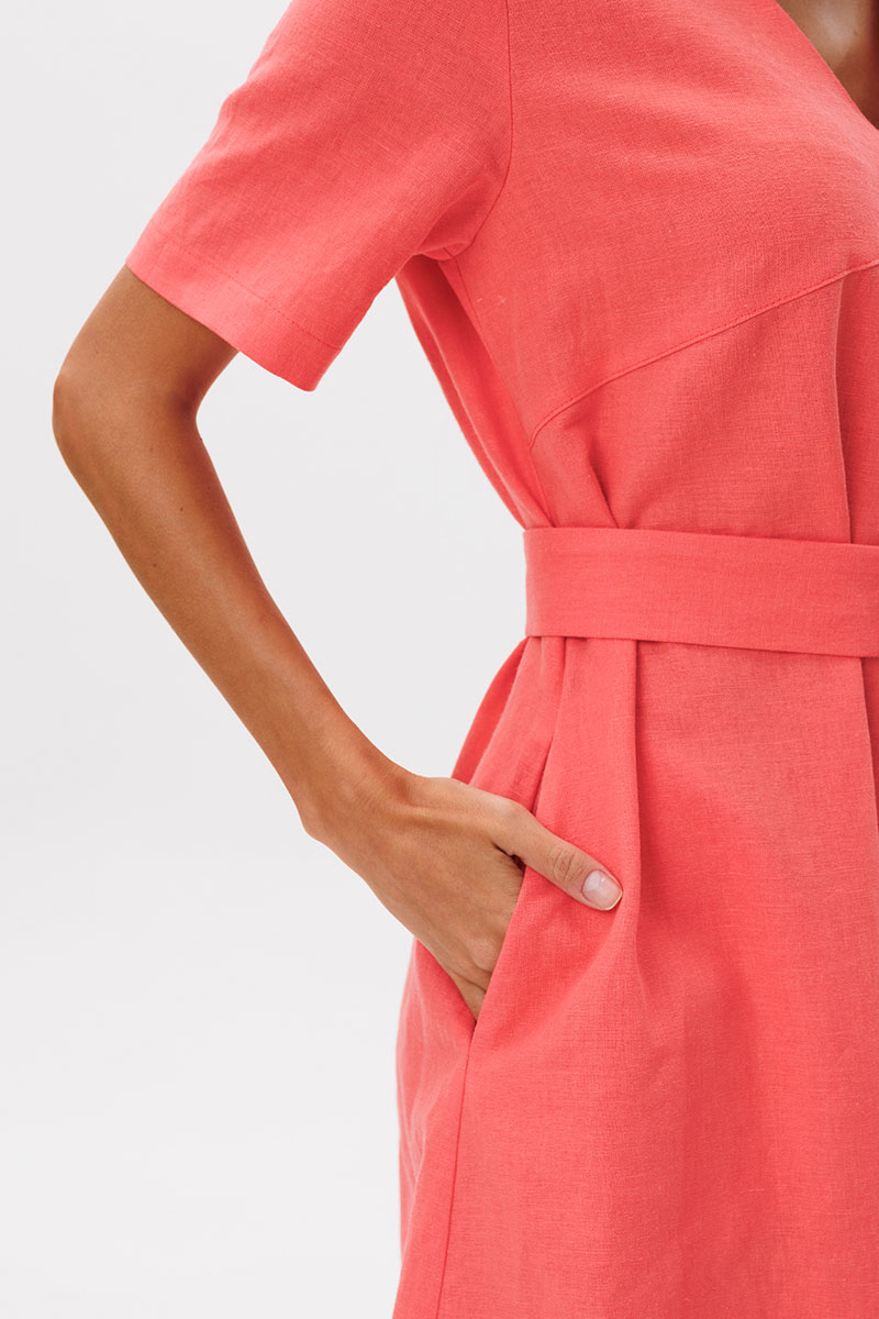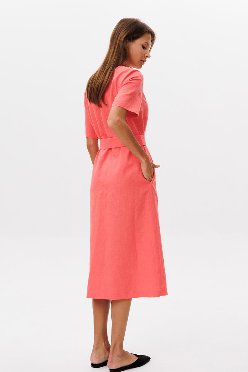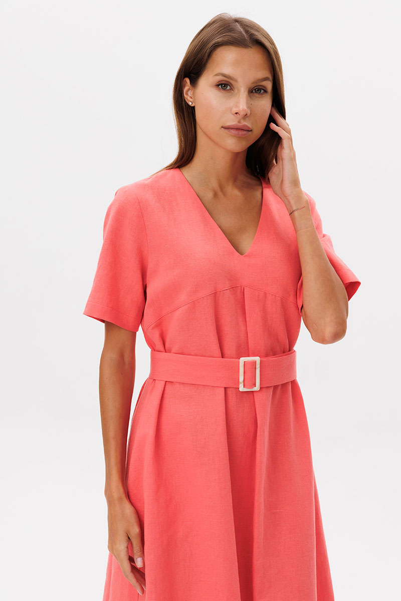Льняное платье свободного кроя А- силуэта с карманами в боковых швах и поясом. Пояс съемный. Такое платье выберут женщины, умеющие носить лаконичные, базовые вещи таким образом, чтобы они подчеркнули их тонкий вкус и умение создавать незабываемый образ.