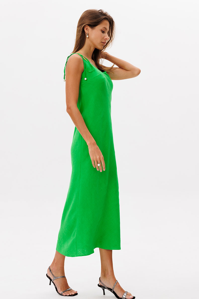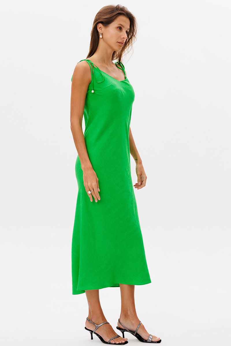 Легкий льняной сарафан свободного силуэта, на обтачке по груди, на регулируемых бретелях, на груди выточки. Сарафан без подкладки.