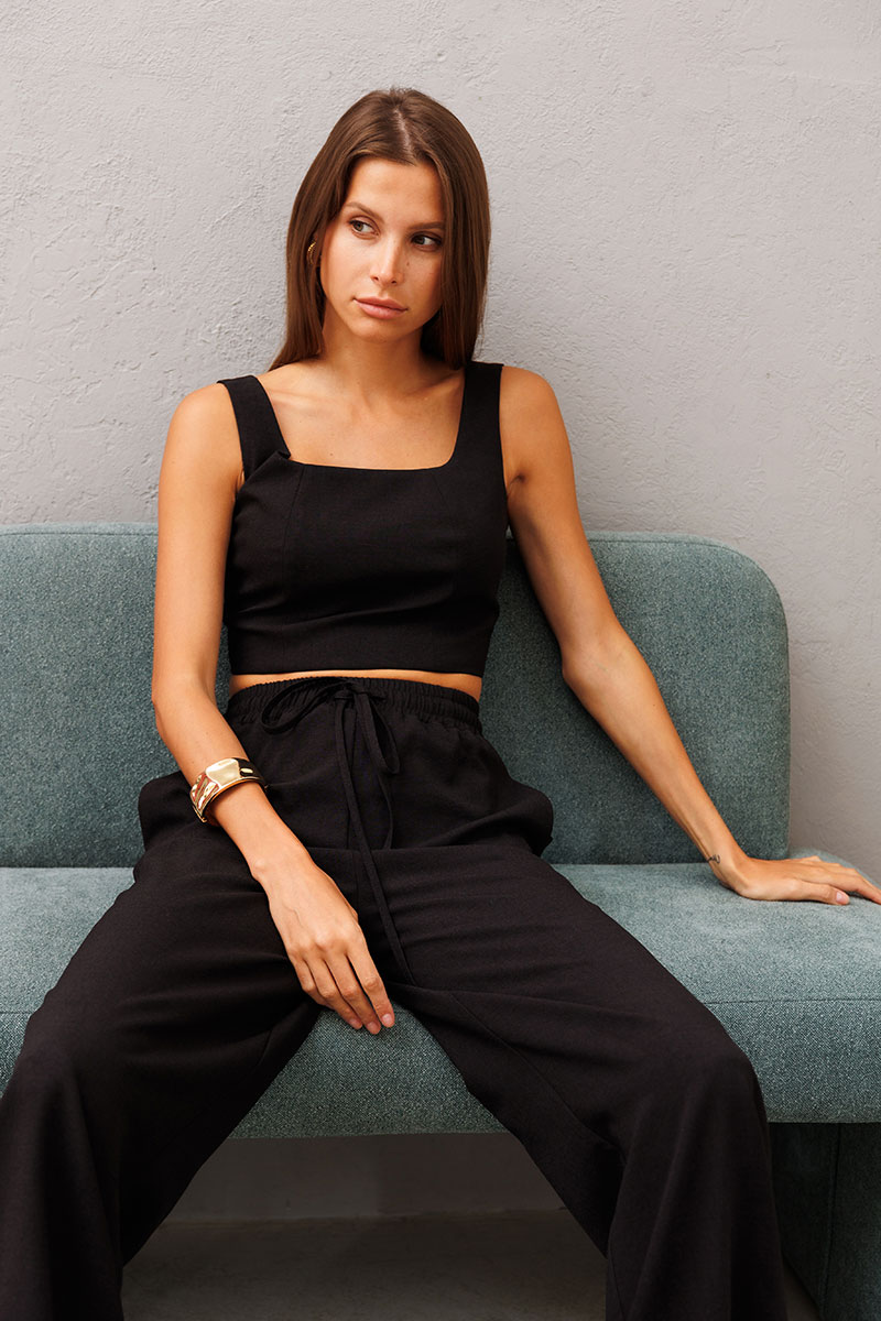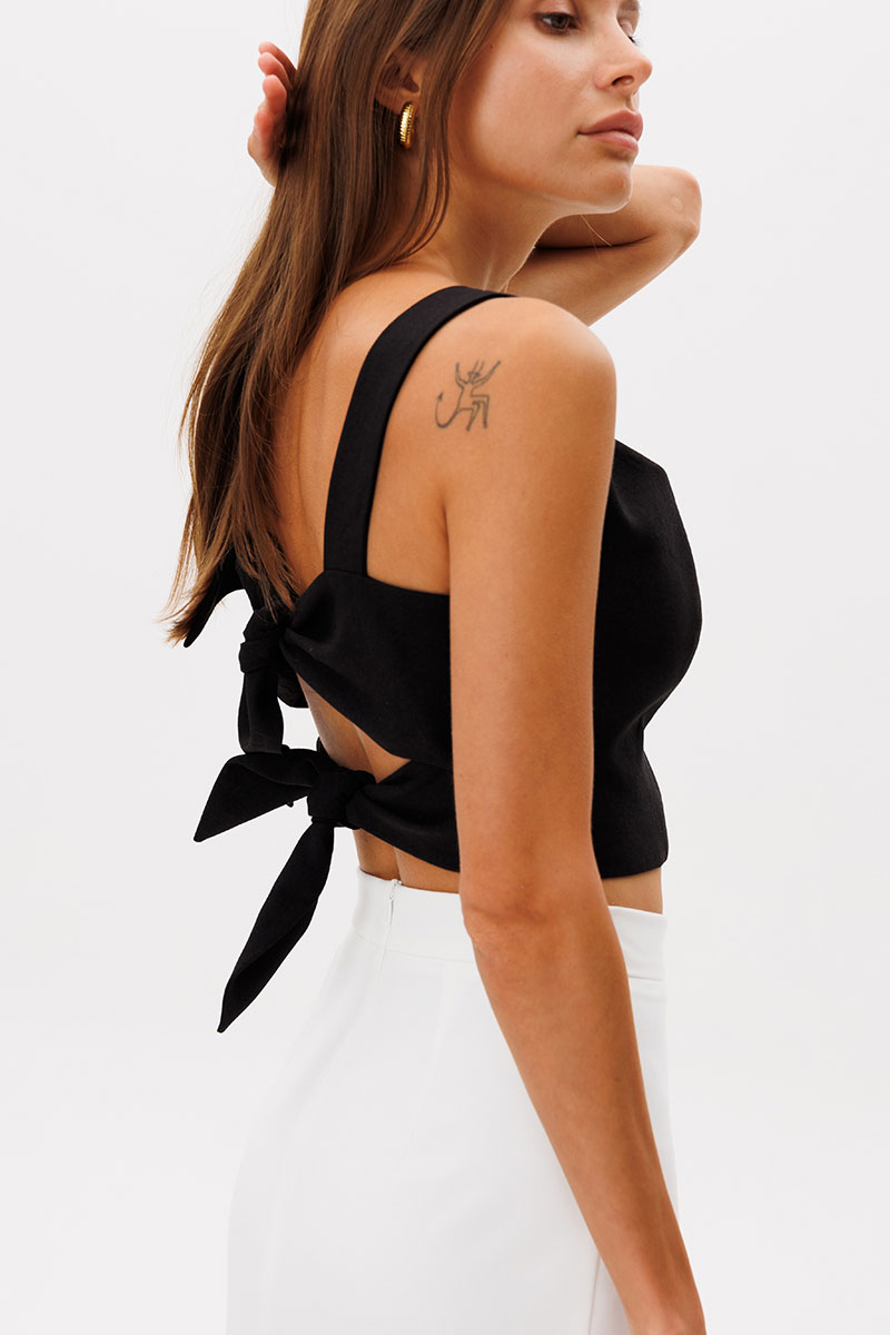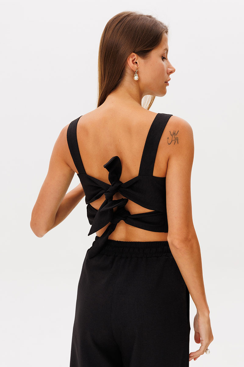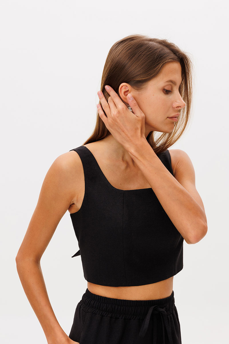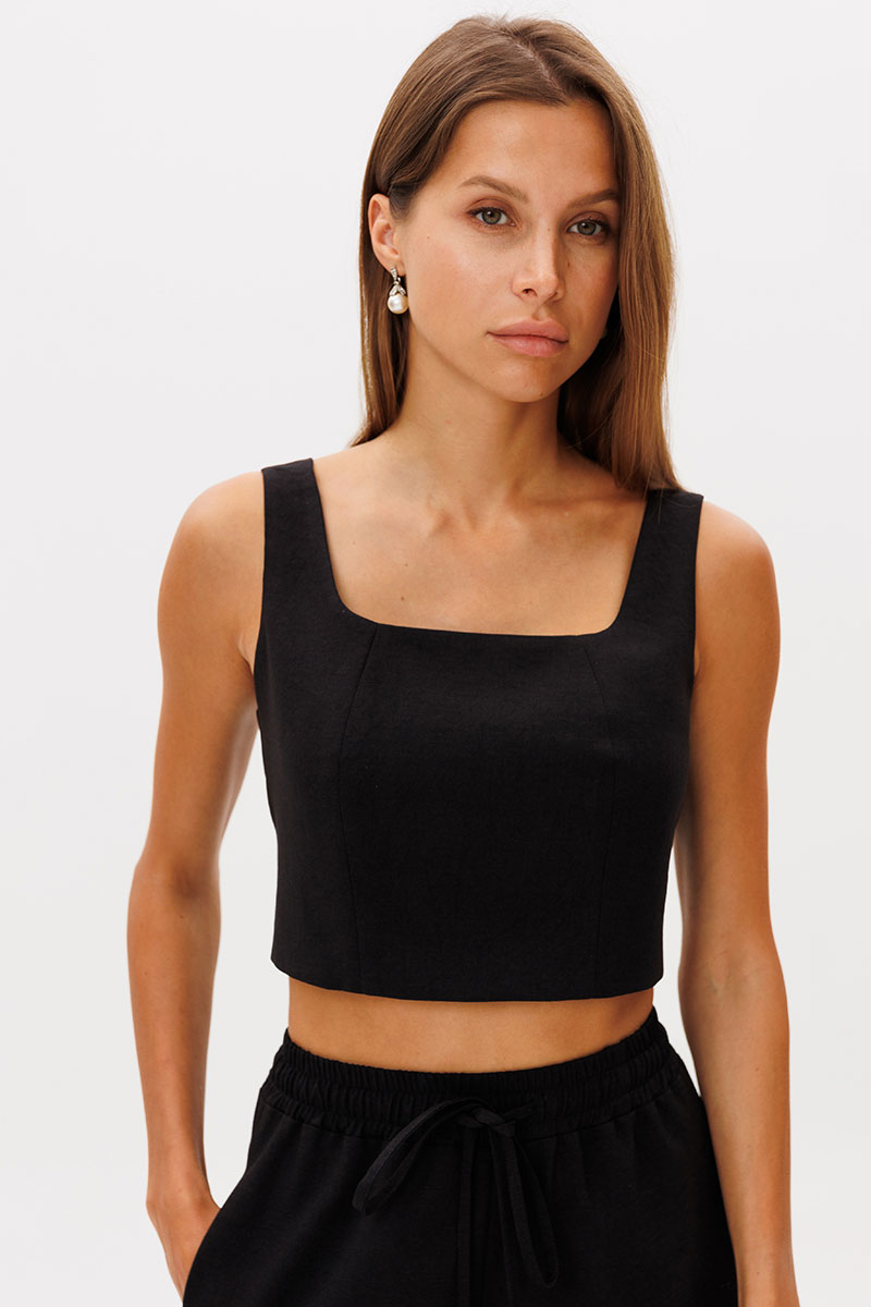 Укороченный топ с рельефами по переду , на бретелях, топ на подкладке из хлопка, по спинке фиксируется завязками. Топ можно носить с брюками, шортами, или дополнив нашей юбкой арт. 2391.