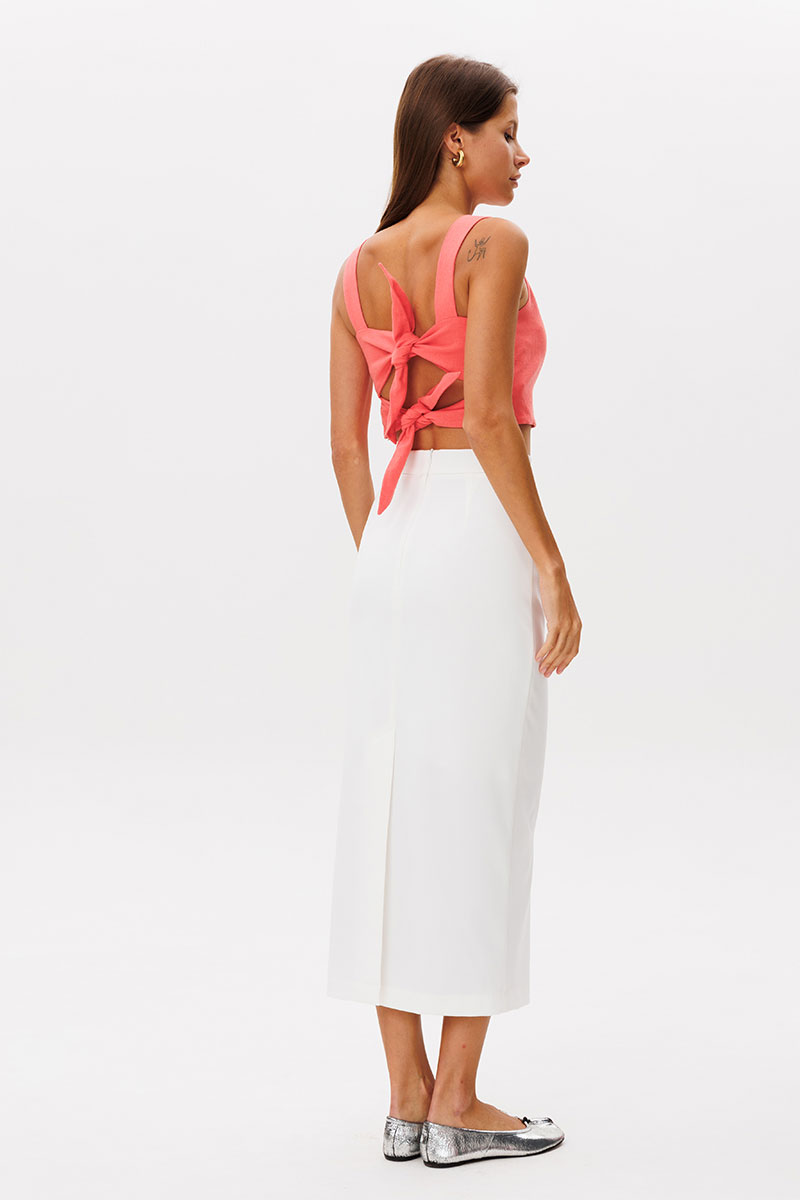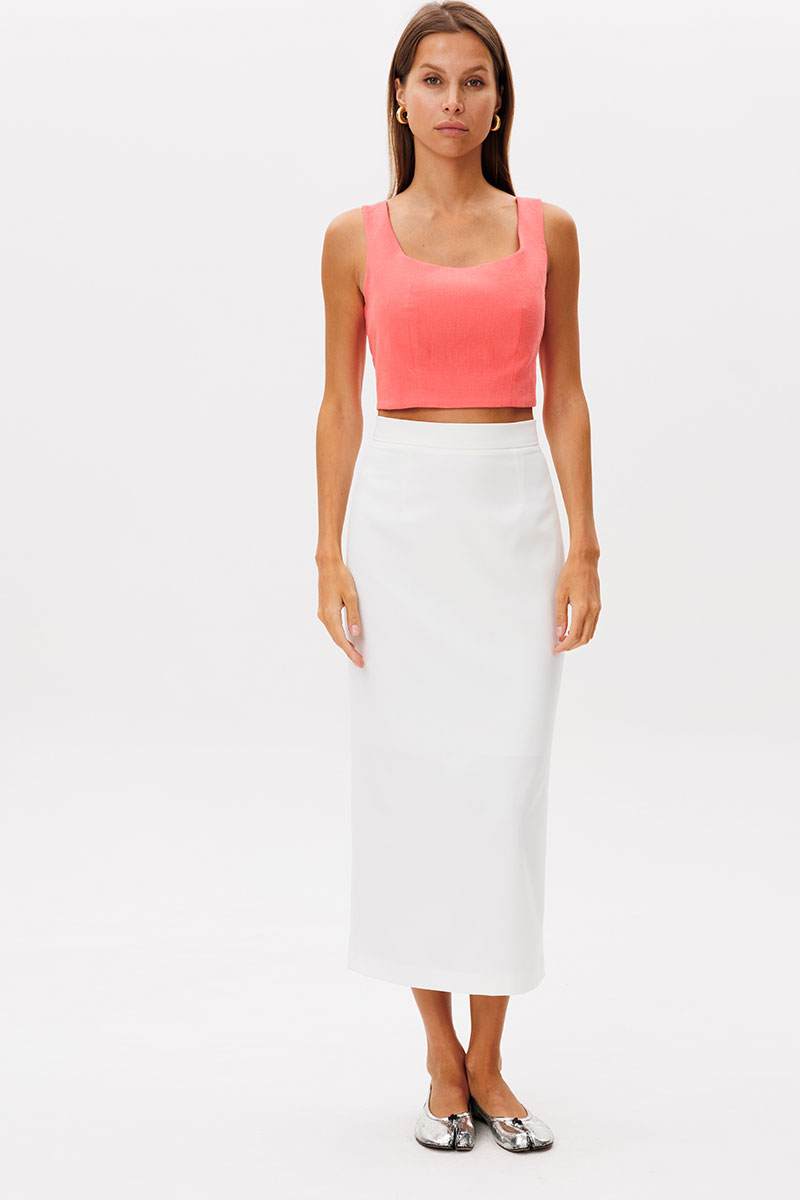 Укороченный топ с рельефами по переду , на бретелях, топ на подкладке из хлопка, по спинке фиксируется завязками. Топ можно носить с брюками, шортами, или дополнив нашей юбкой арт. 2391.