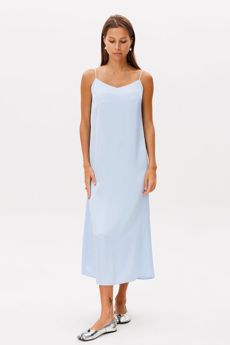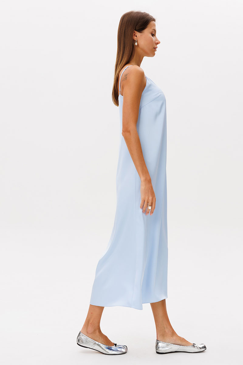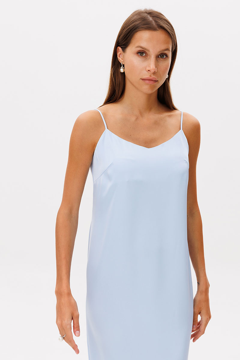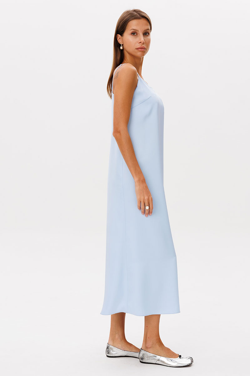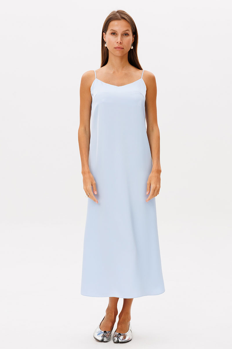Легкий сарафан свободного силуэта, на обтачке по груди, на регулируемых бретелях, на груди выточки. Сарафан без подкладки. Ткань атлас.