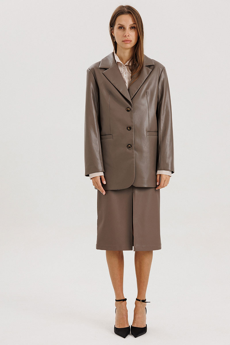 Юбка прямого кроя на притачном поясе со шлевками, по переду карманы, сзади застежка на потайную молнию и крючок, по переду высокий разрез. Юбка без подкладки. Выполнена из мягкой экокожи на "замшевой" основе. . Рост модели 178 см.