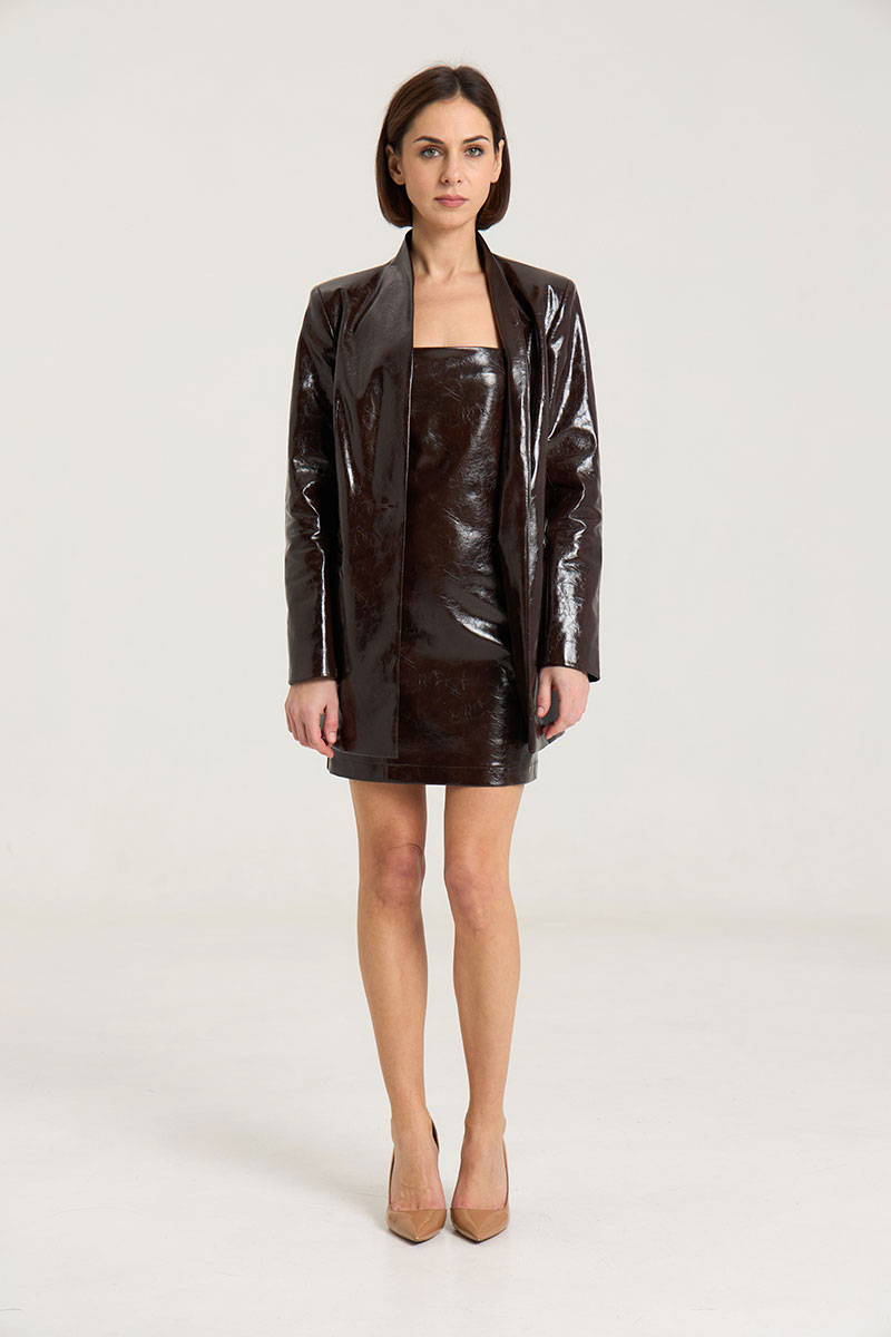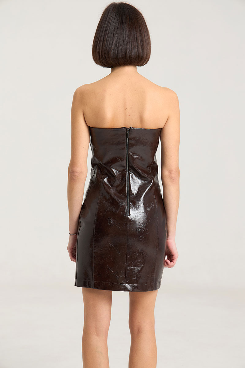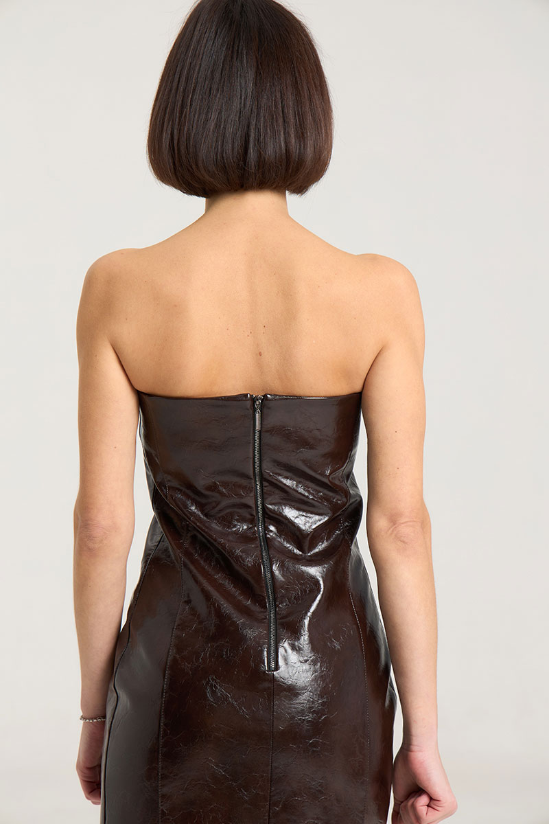 Платье-бандо выполнено измягкой экокожи черного цвета. Платье прилегающего кроя, подчеркивающего силуэт. Изделие имеетбоковые швы спереди и сзади,застежка на декоративную молнию по спинке в среднем шве. Платье на подкладке. Данную модель можно сочетать с балетками, мюлями, босоножками на плоской подошве или обувью на каблуке. Рост модели на фото 168 см.