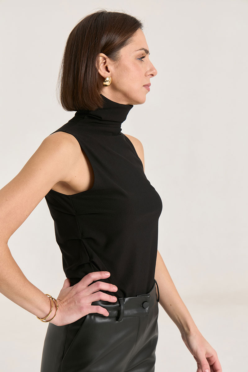 Джемпер выполнен из трикотажной ткани премиального класса, ткань плотная, мягкая, не просвечивает. Горло цельнокроеное высокое, за счет этого можно его драпировать либо носить с подворотом, по бокам защипы, что придает фигуре стройности, за счет красивых линий складок.