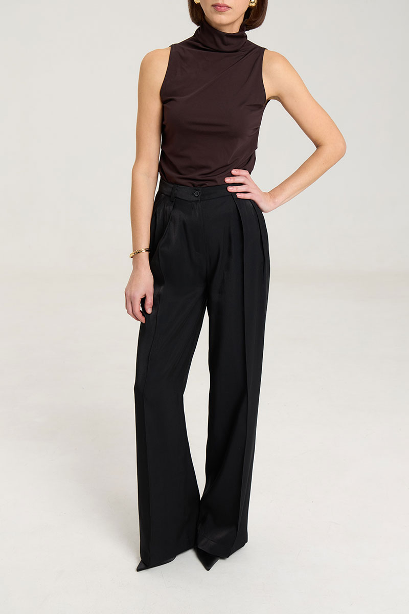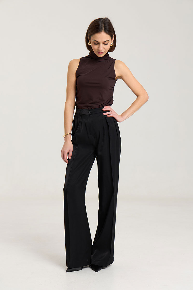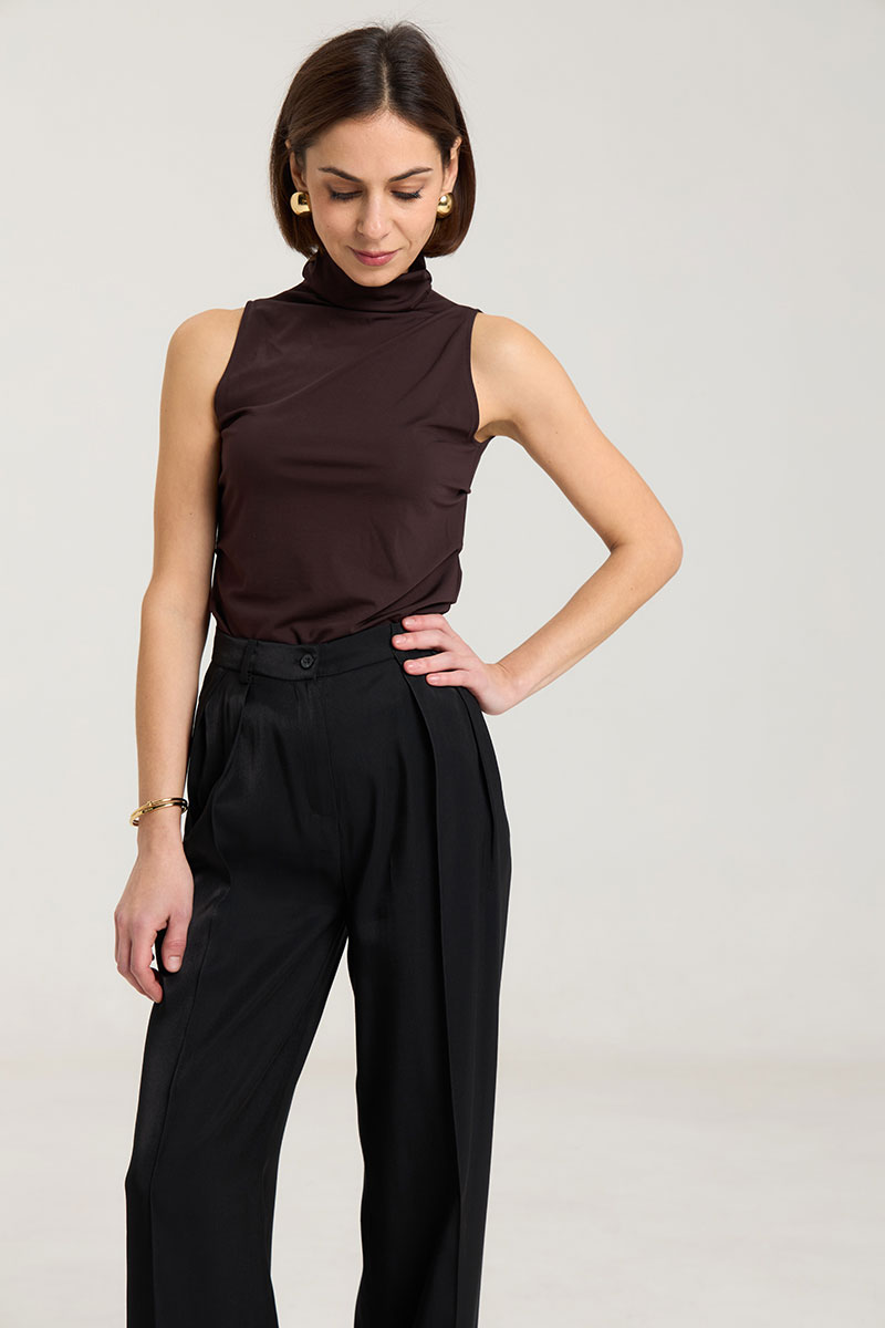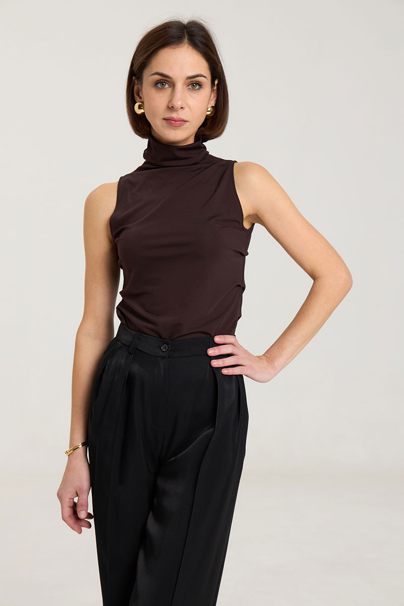 Джемпер выполнен из трикотажной ткани премиального класса, ткань плотная, мягкая, не просвечивает. Горло цельнокроеное высокое, за счет этого можно его драпировать либо носить с подворотом, по бокам защипы, что придает фигуре стройности, за счет красивых линий складок.