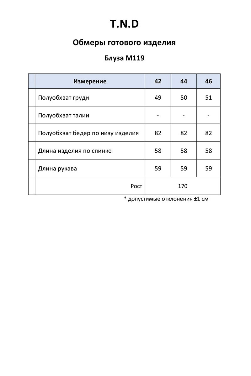 манжет, который застегивается на одну петлю и пуговицу. Горловина округлая с небольшой стойкой. Застежка блузы центральная с планкой, на петли и декоративные пуговицы.