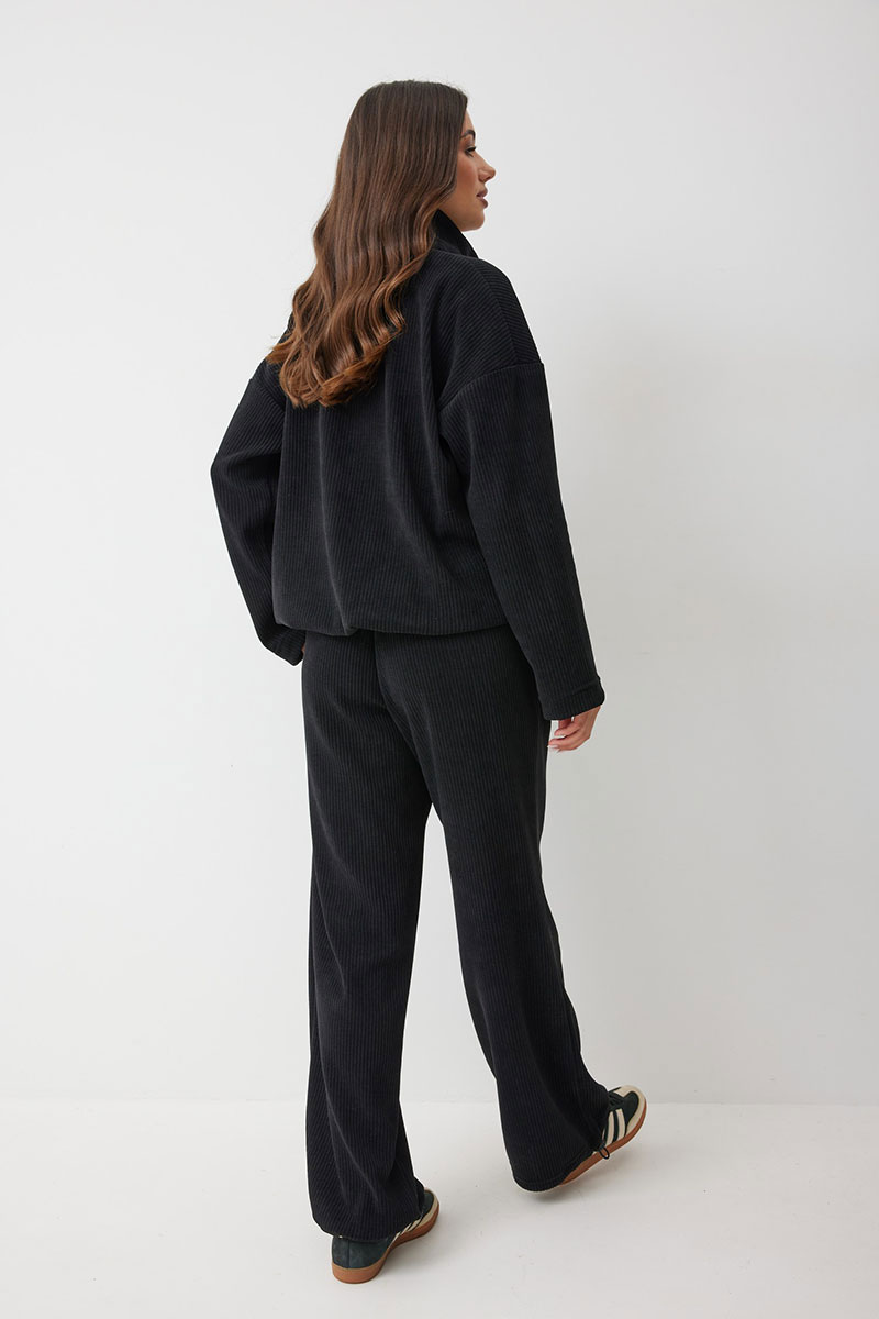 Женский джемпер в актуальном спортивном стиле. Модель выполнена из мягкого трикотажного полотна с широким рубчиком, что добавляет фактурности и мягкости. Свободный силуэт гарантирует
