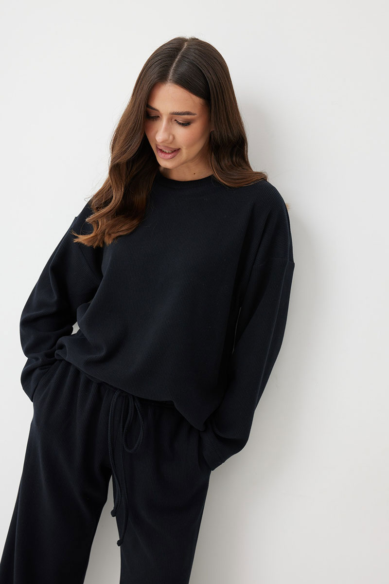 Женский джемпер в актуальном спортивном стиле. Модель выполнена из мягкого трикотажного полотна с рубчиком, что добавляет фактурности и мягкости. Свободный силуэт гарантирует