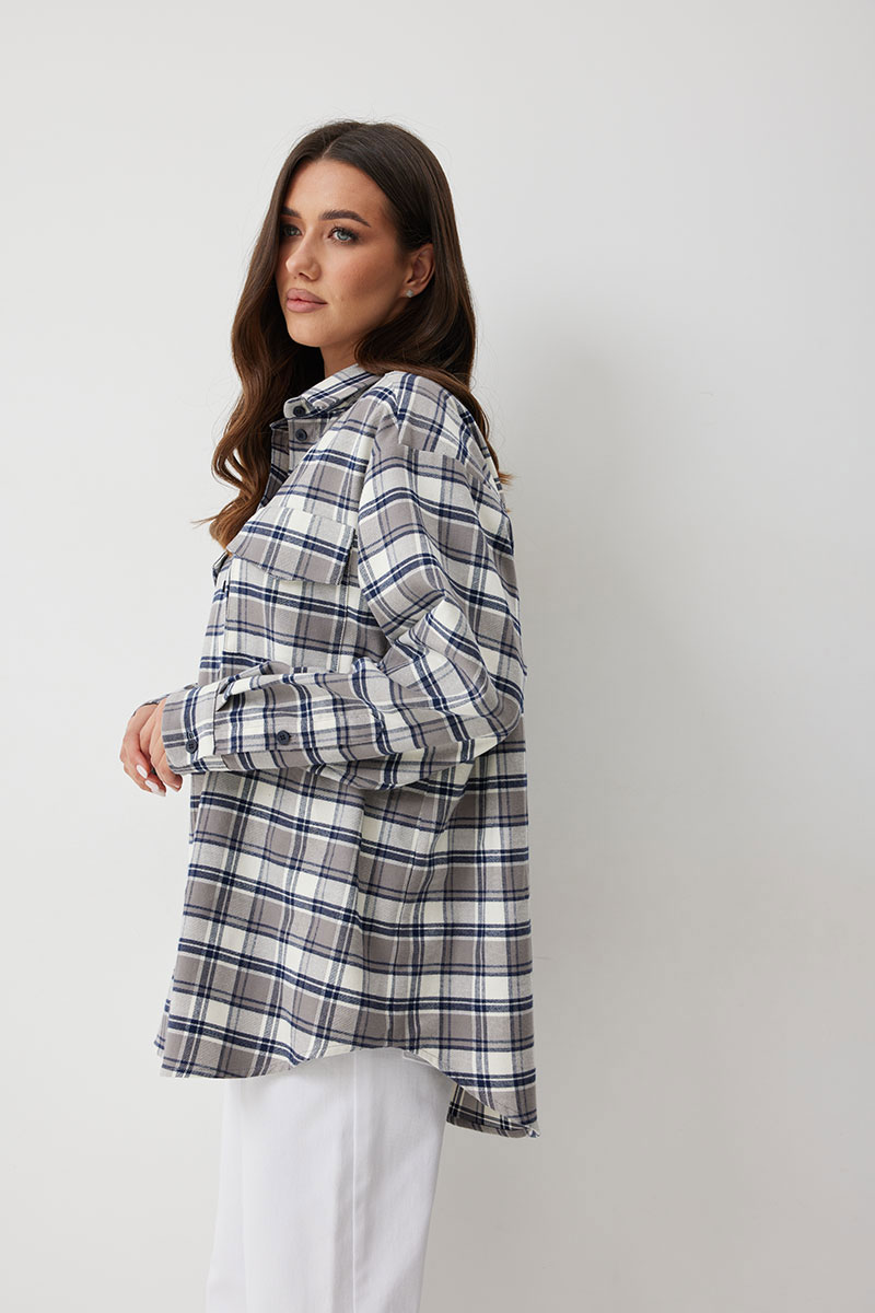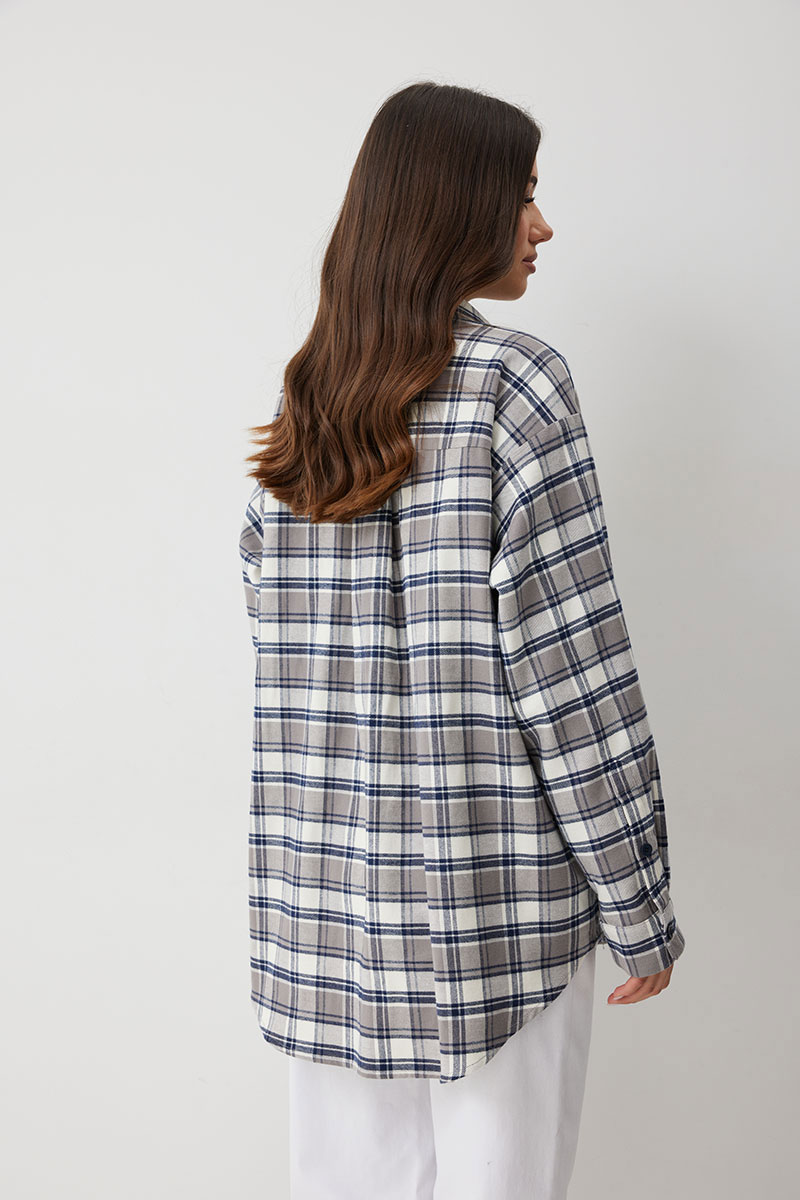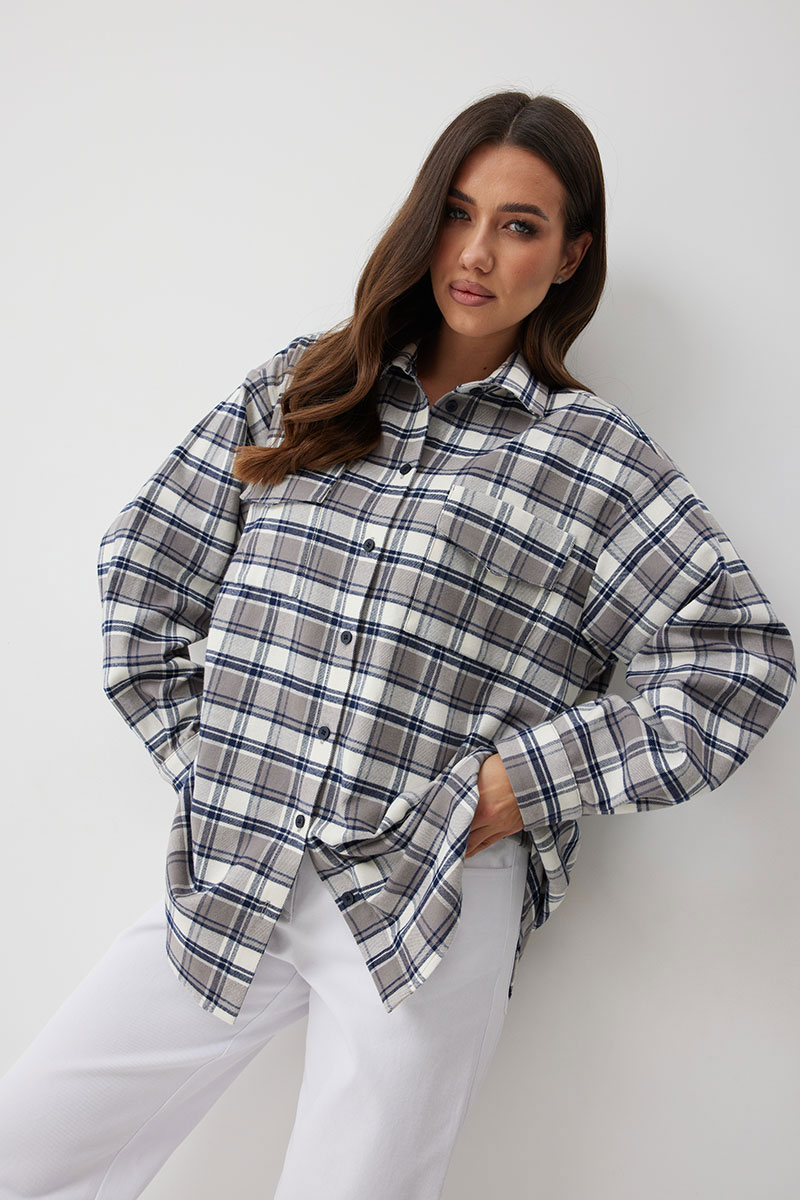 Женская рубашка в стиле кэжуал.— основа для повседневного гардероба. Рубашка свободного силуэта. Горловина с классическим рубашечным воротником. Застежка центральная на петли и пуговицы. Расслабленный крой подчеркнут спущенной линией плеча и длинными рукавами, снизу с манжетой на пуговице. По полочке накладные карманы с клапаном. По спинке отрезная кокетка со встречной складкой обеспечивает комфортный дополнительный объем. Низ рубашки скруглен к боковым швам. Эта рубашка — незаменимая база, которая легко интегрируется в любой повседневный образ. На фото с джинсами М352.