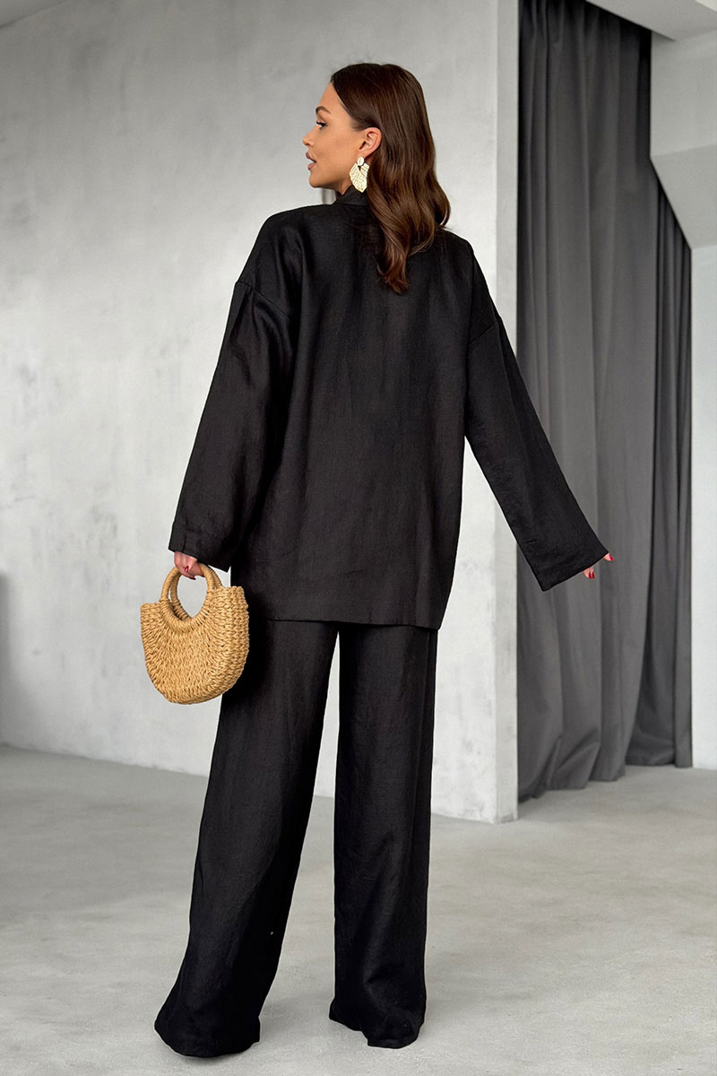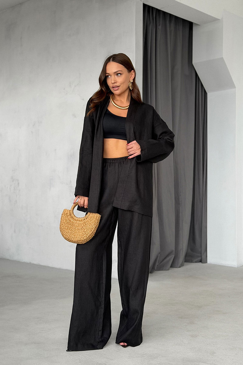 Брюки из льняной ткани прямого кроя — универсальная модель для создания комфортных и стильных образов на каждый день. Пояс притачной на резинке. В боковых швах функциональные