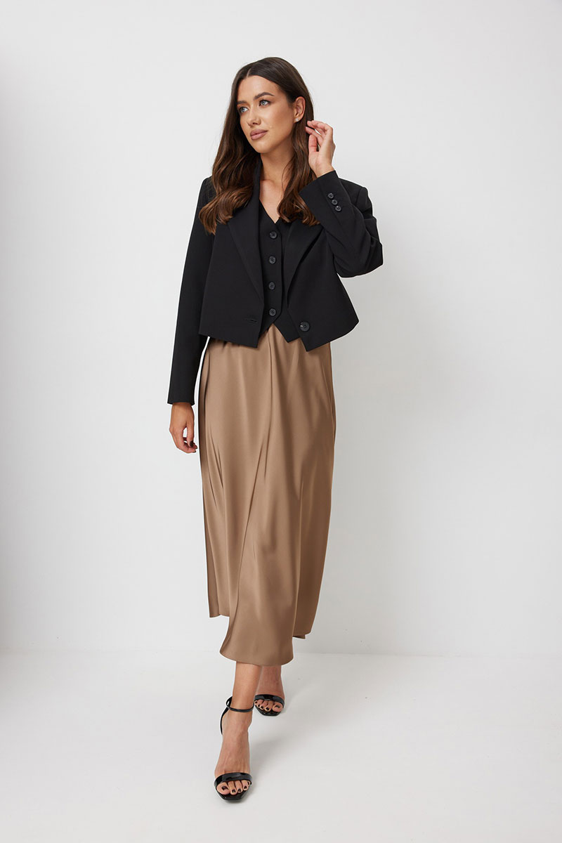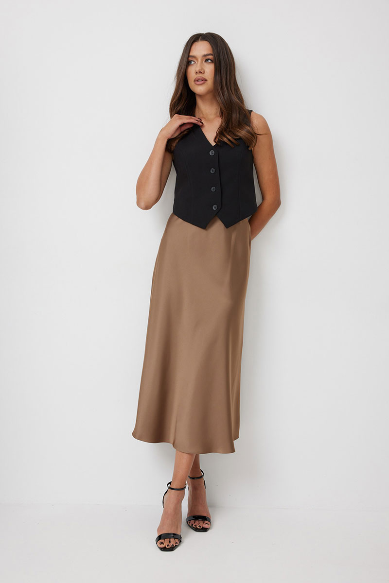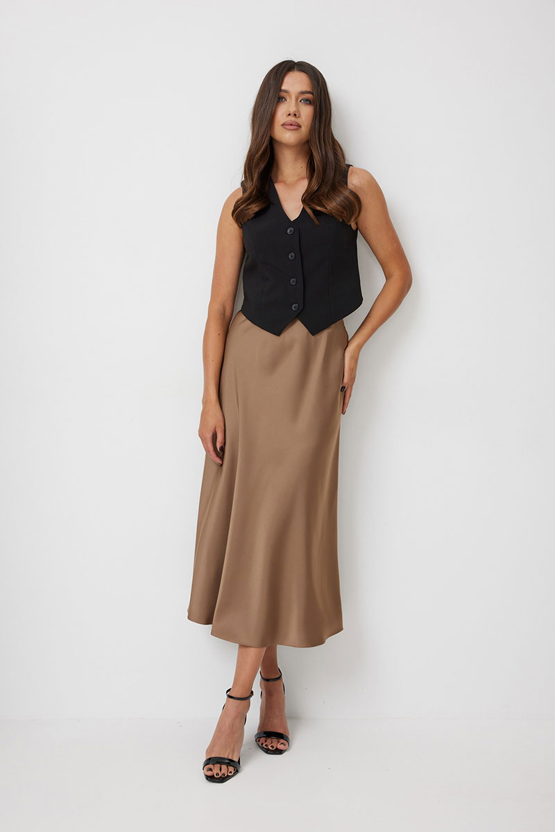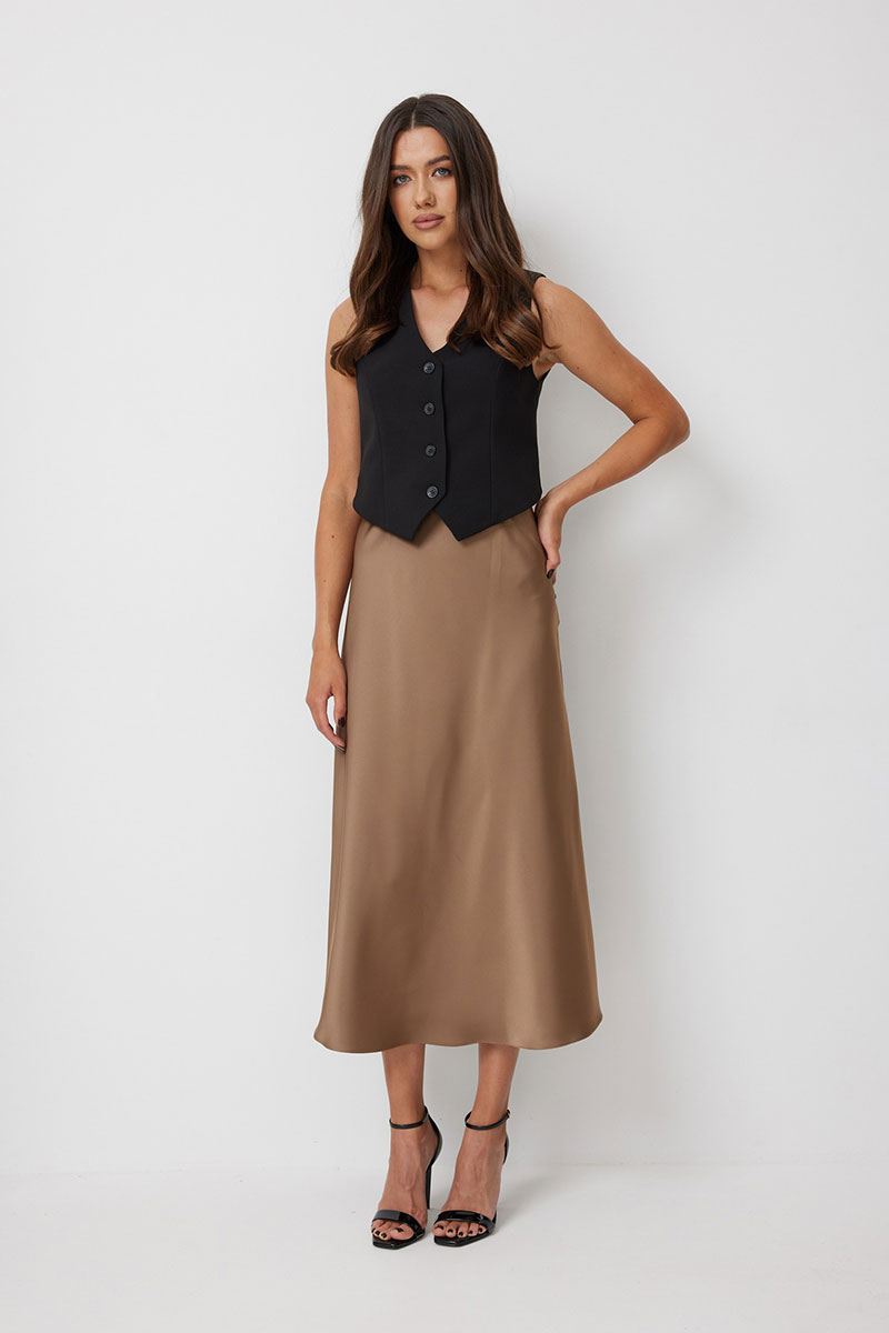 Юбка женская, полуприлегающего силуэта, выполнена из струящегося полотна. Юбка без застежки. Юбка без подкладки.