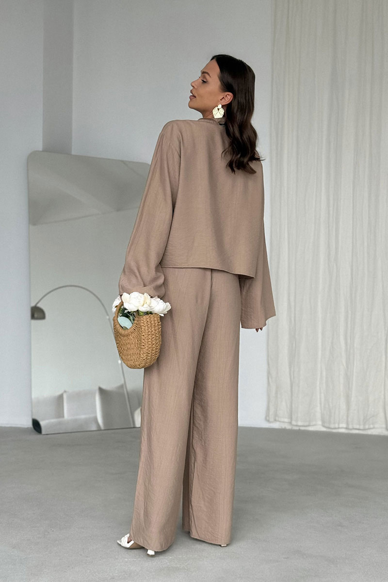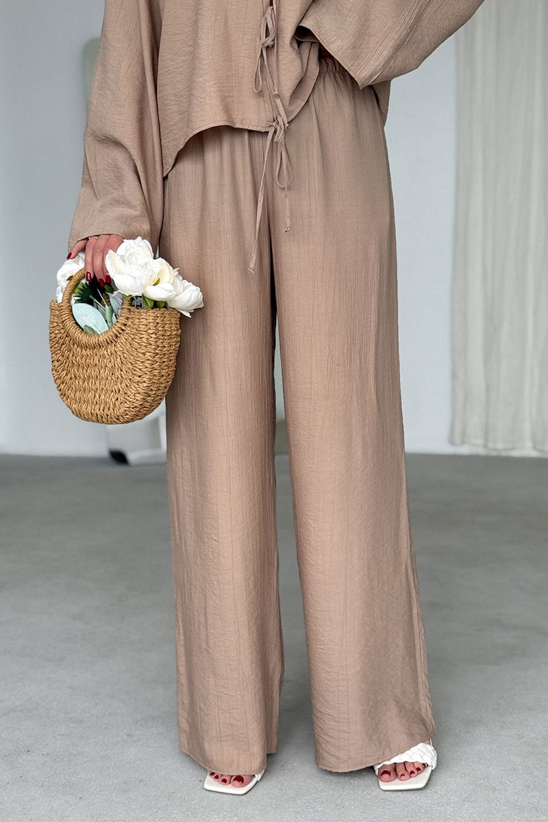 Летние лёгкие брюки из вискозной ткани с эффектом мятости — универсальная модель, которая станет незаменимой частью вашего гардероба и позволит создавать разнообразные стильные образы. Прямой крой брюк обеспечивает комфортную посадку и подходит для разных типов фигуры. Пояс на эластичной резинке шириной 2 см. В боковых швах функциональные карманы. Брюки легко комбинируются с разной одеждой: они отлично смотрятся с облегающими топами, свободными блузами, футболками и рубашками. На фото с блузкой М197