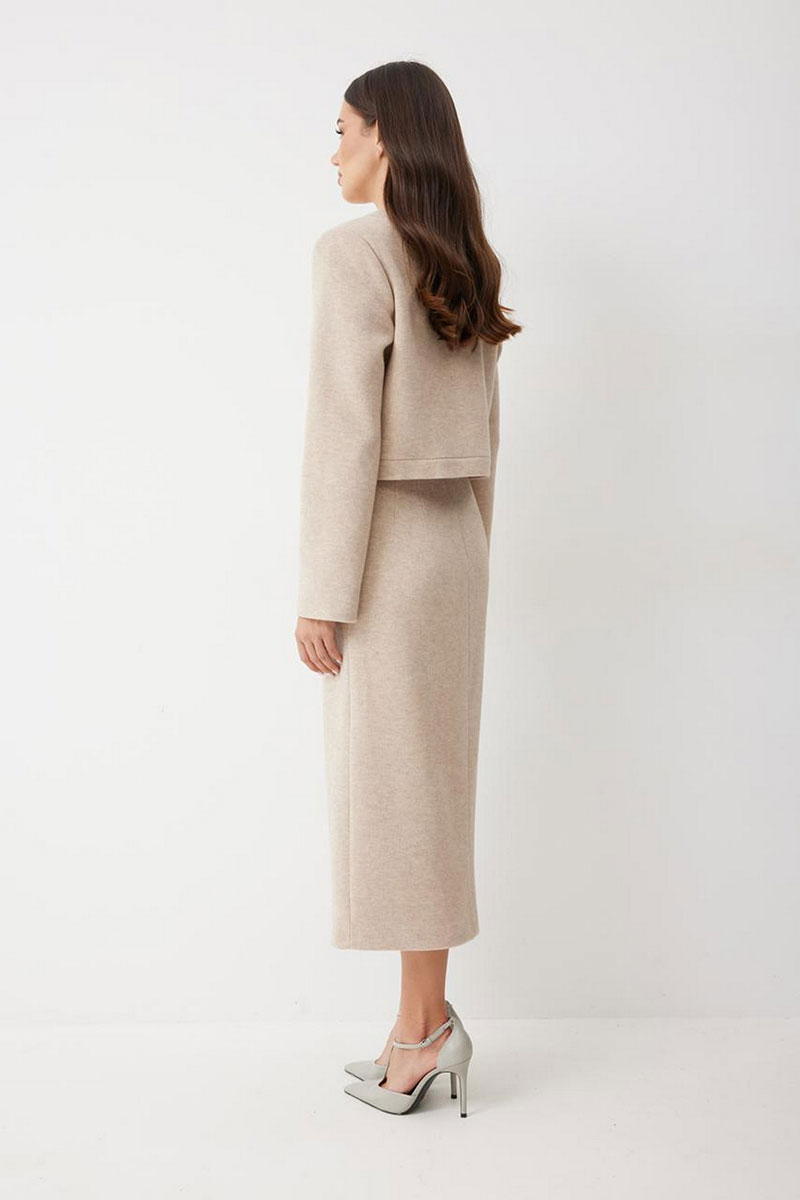 этом удобной в носке. По переднему полотнищу средний шов, заканчивающийся высоким разрезом, длиной 43 см, который добавляет женственность и комфорт при движении. Пояс притачной,