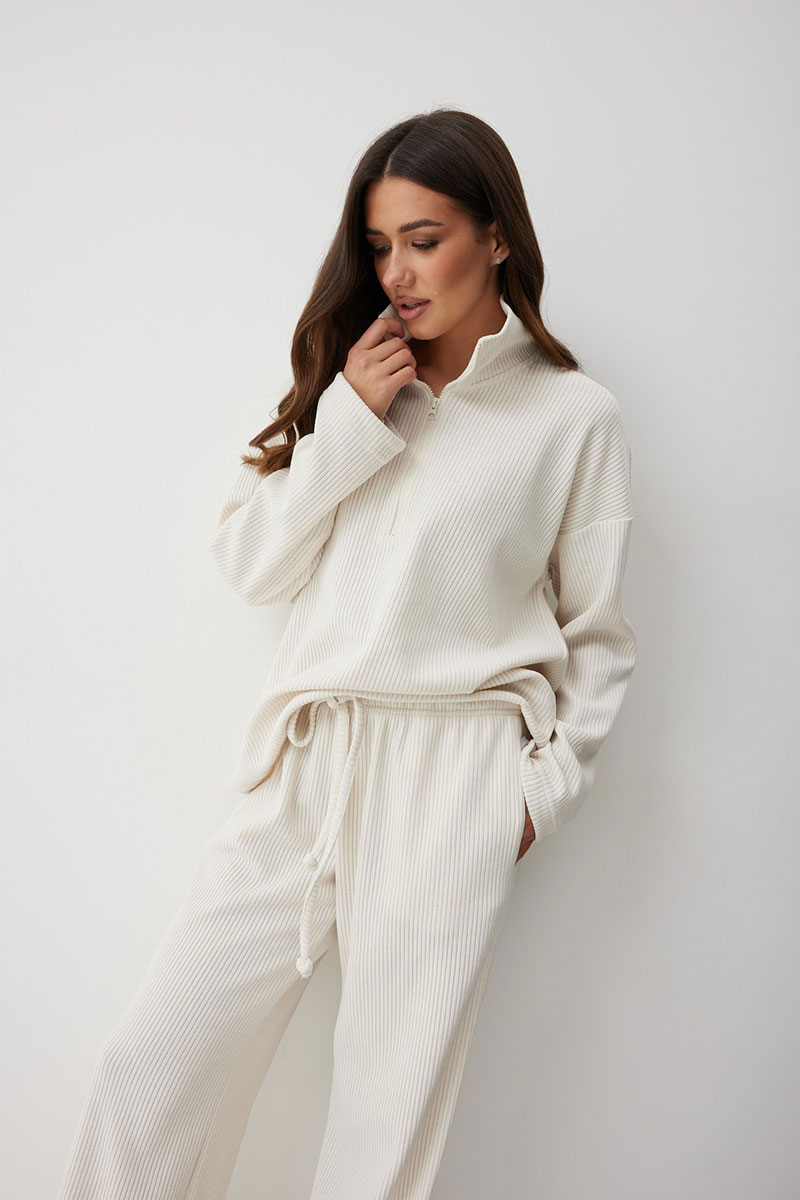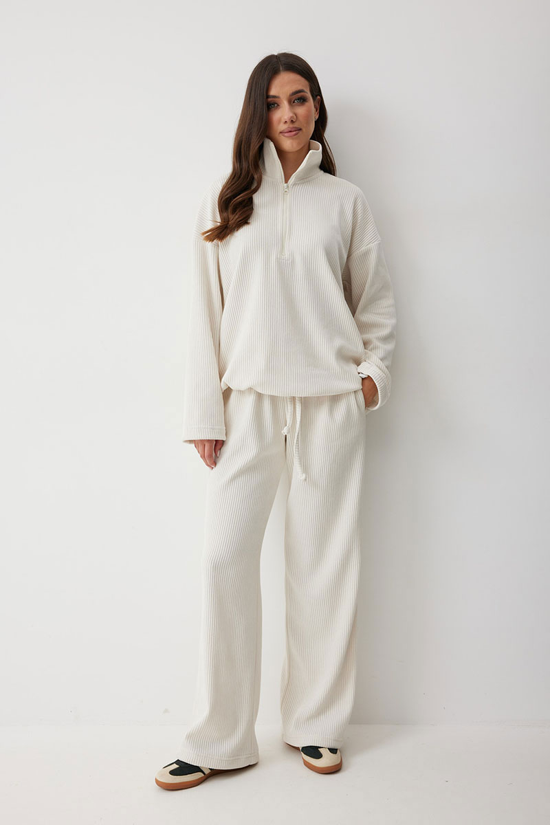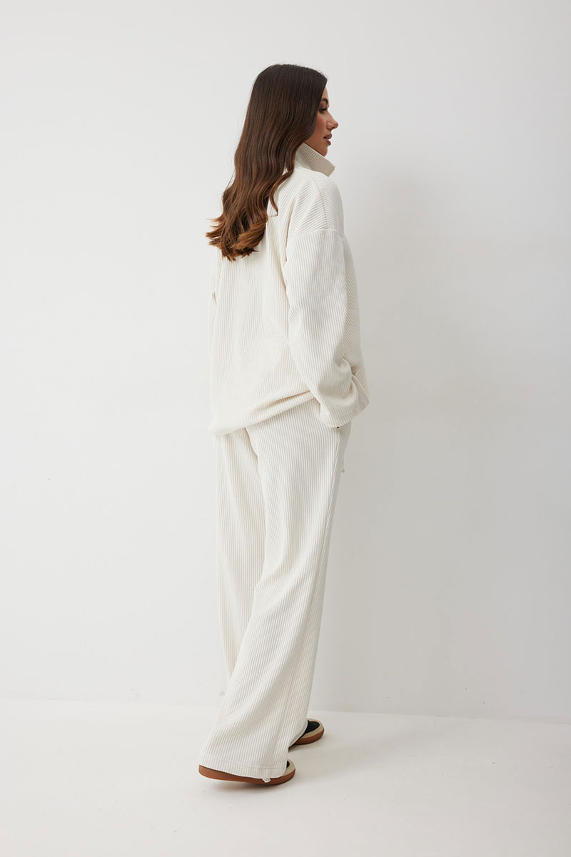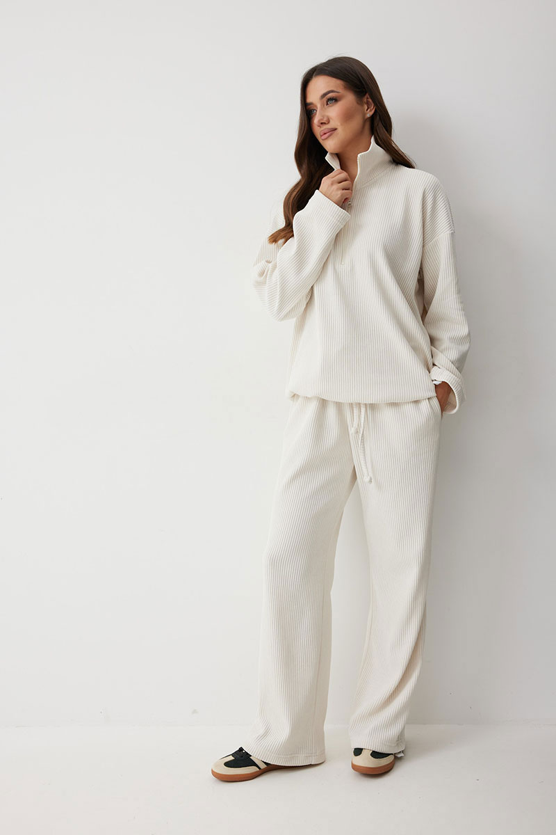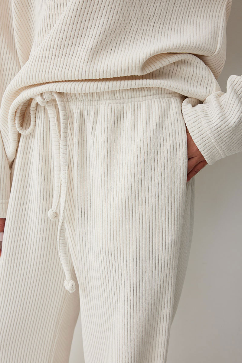 Женские брюки в актуальном спортивном стиле. Модель выполнена из мягкого трикотажного полотна с широким рубчиком, что добавляет фактурности и мягкости. Свободный силуэт гарантирует