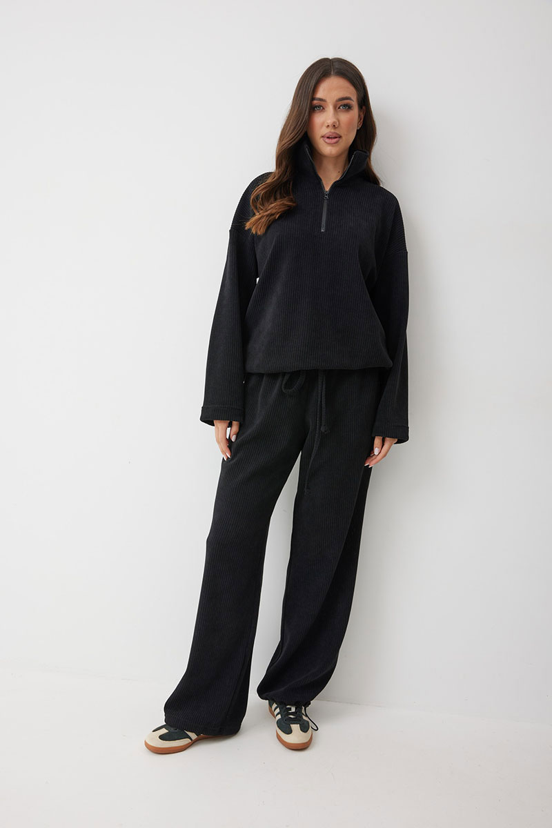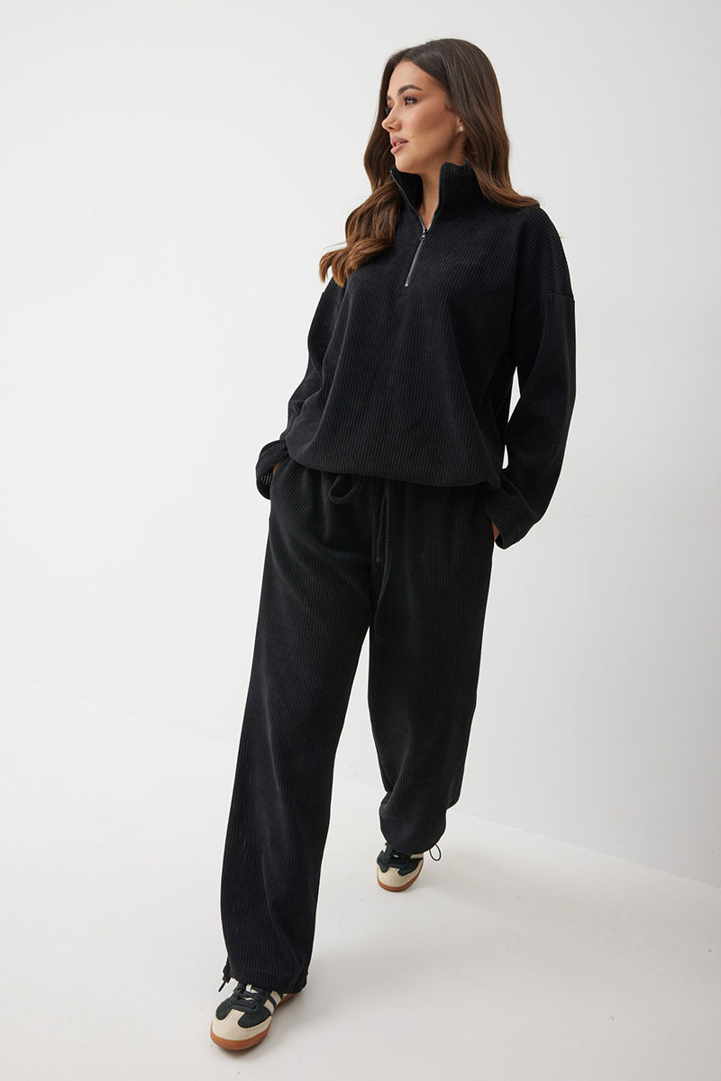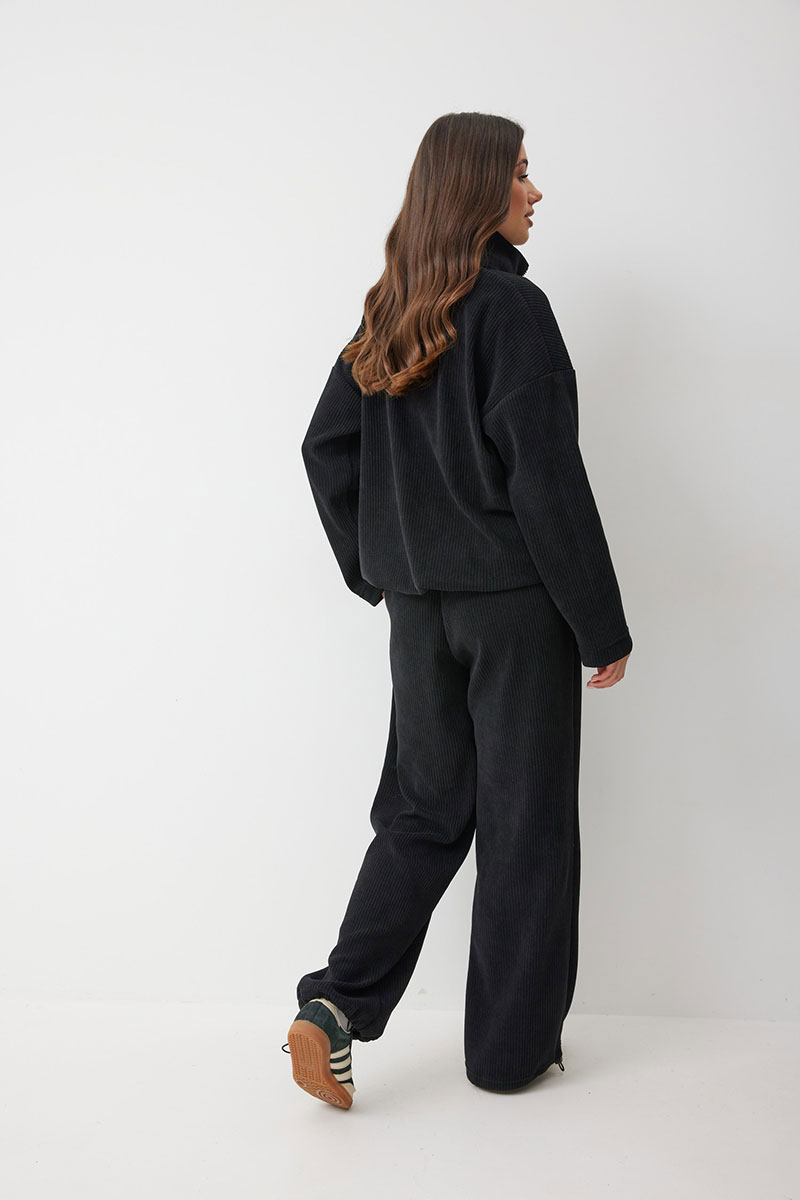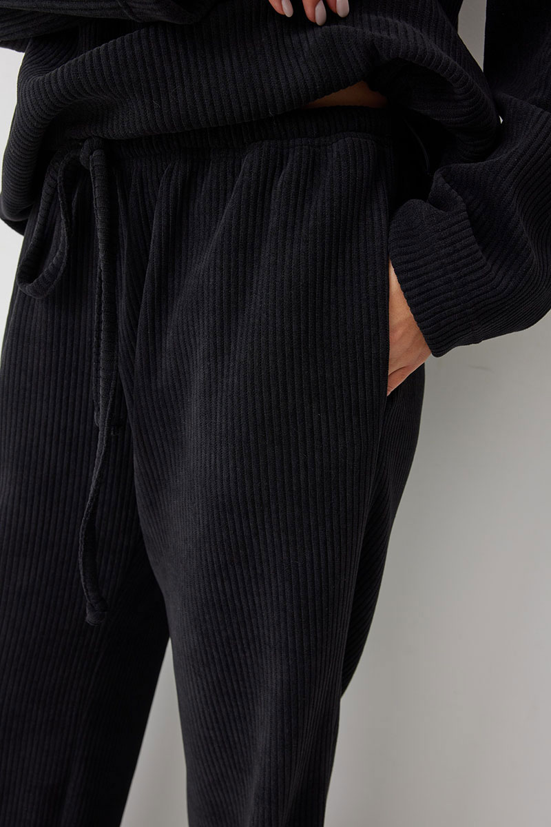 Женские брюки в актуальном спортивном стиле. Модель выполнена из мягкого трикотажного полотна с широким рубчиком, что добавляет фактурности и мягкости. Свободный силуэт гарантирует
