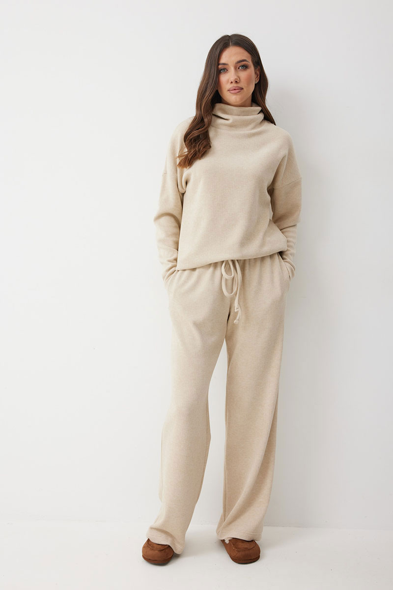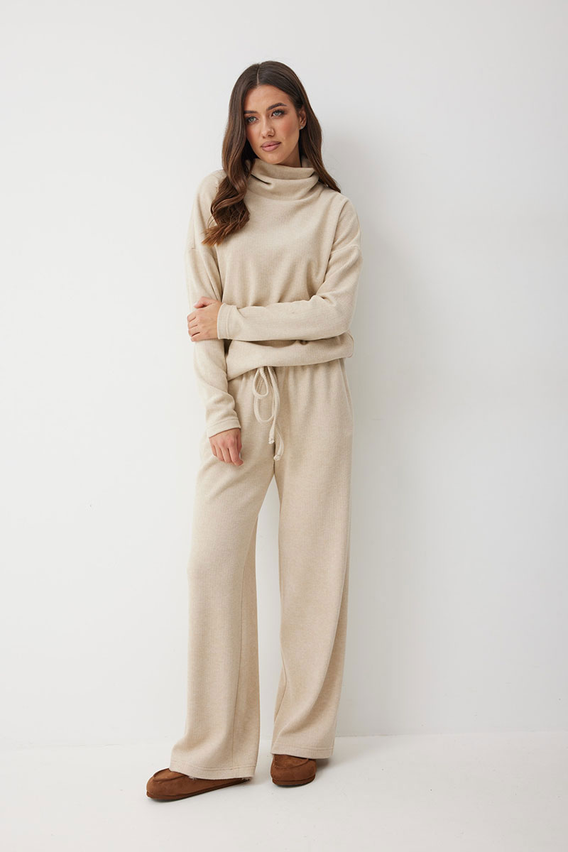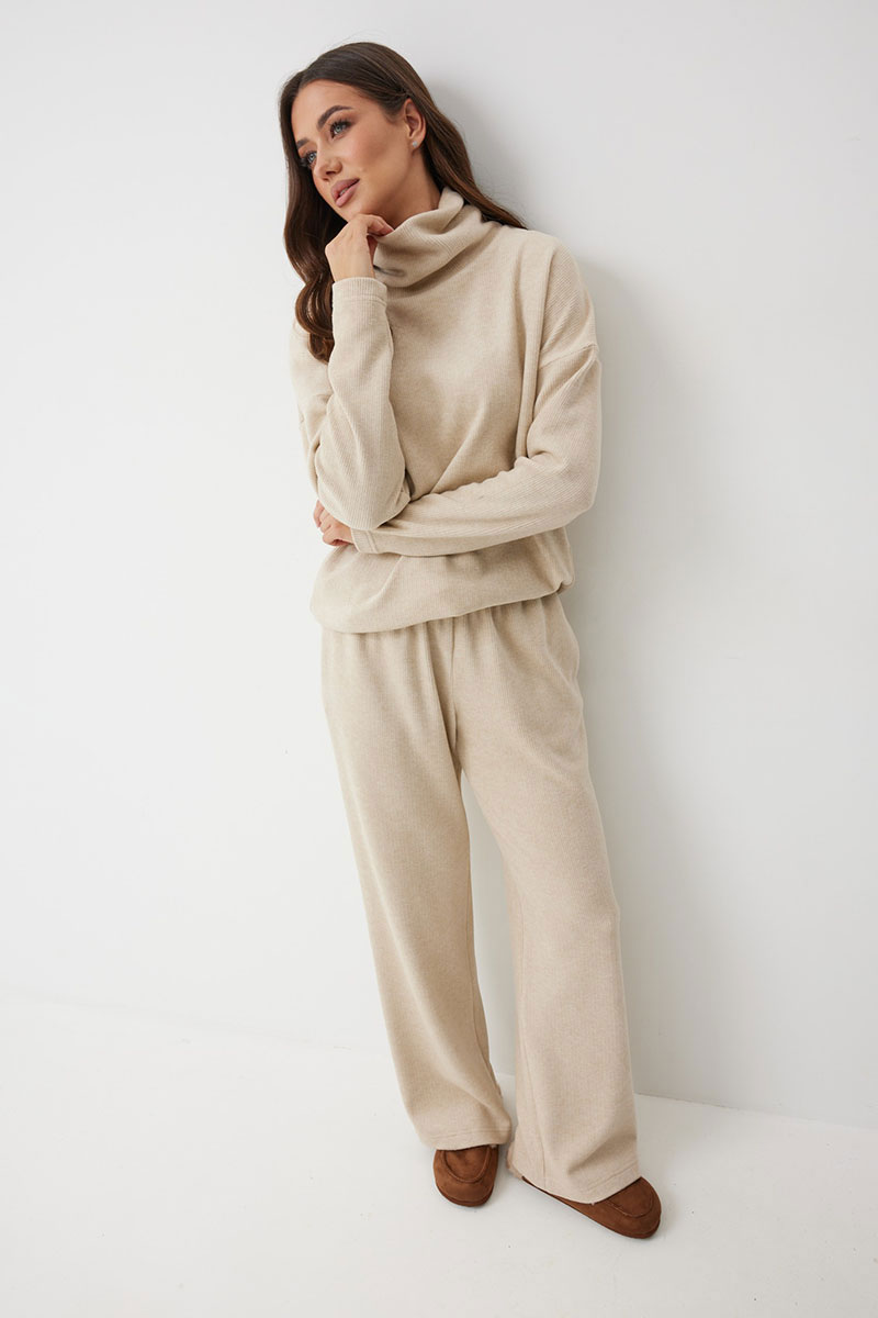 Женские брюки в актуальном спортивном стиле. Модель выполнена из мягкого трикотажного полотна с рубчиком, что добавляет фактурности и мягкости. Свободный силуэт гарантирует