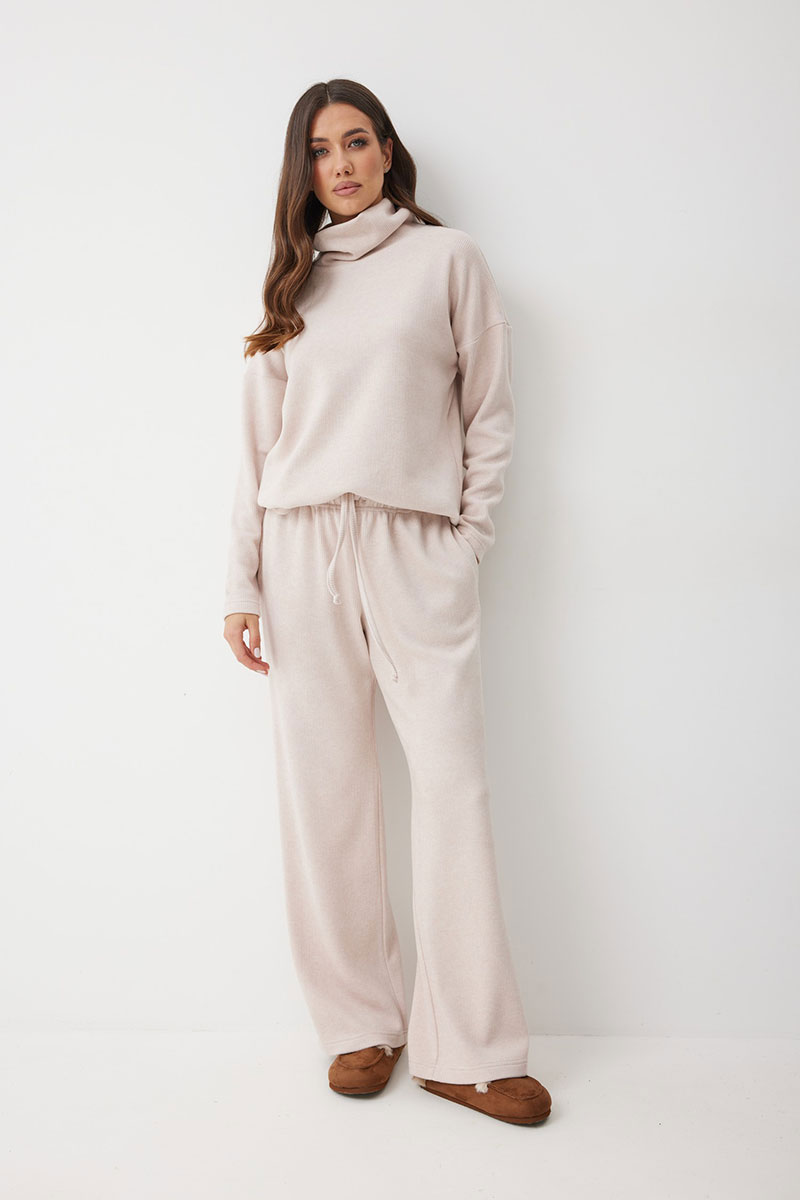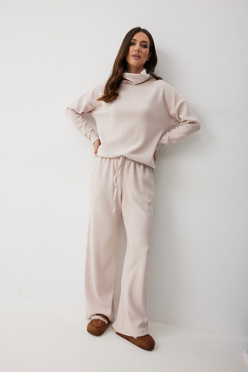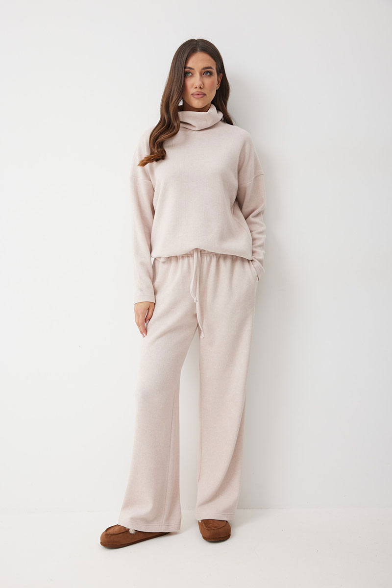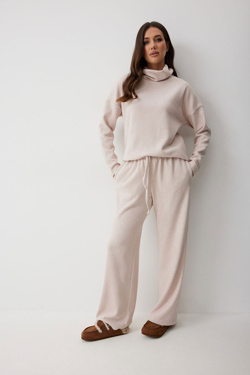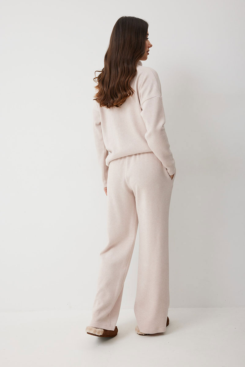 Женские брюки в актуальном спортивном стиле. Модель выполнена из мягкого трикотажного полотна с рубчиком, что добавляет фактурности и мягкости. Свободный силуэт гарантирует