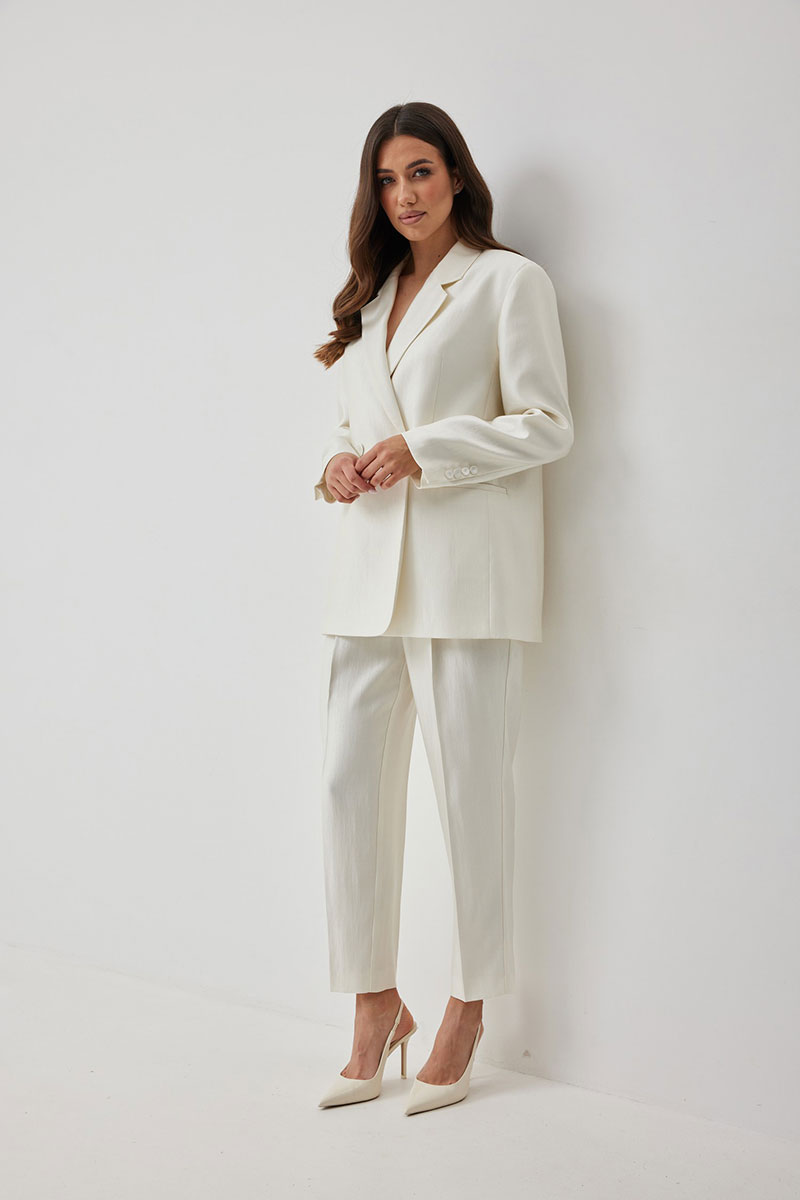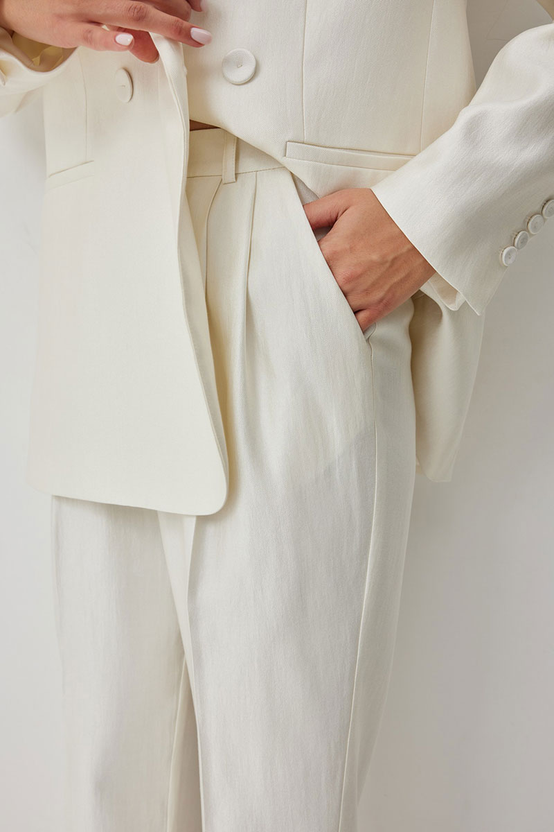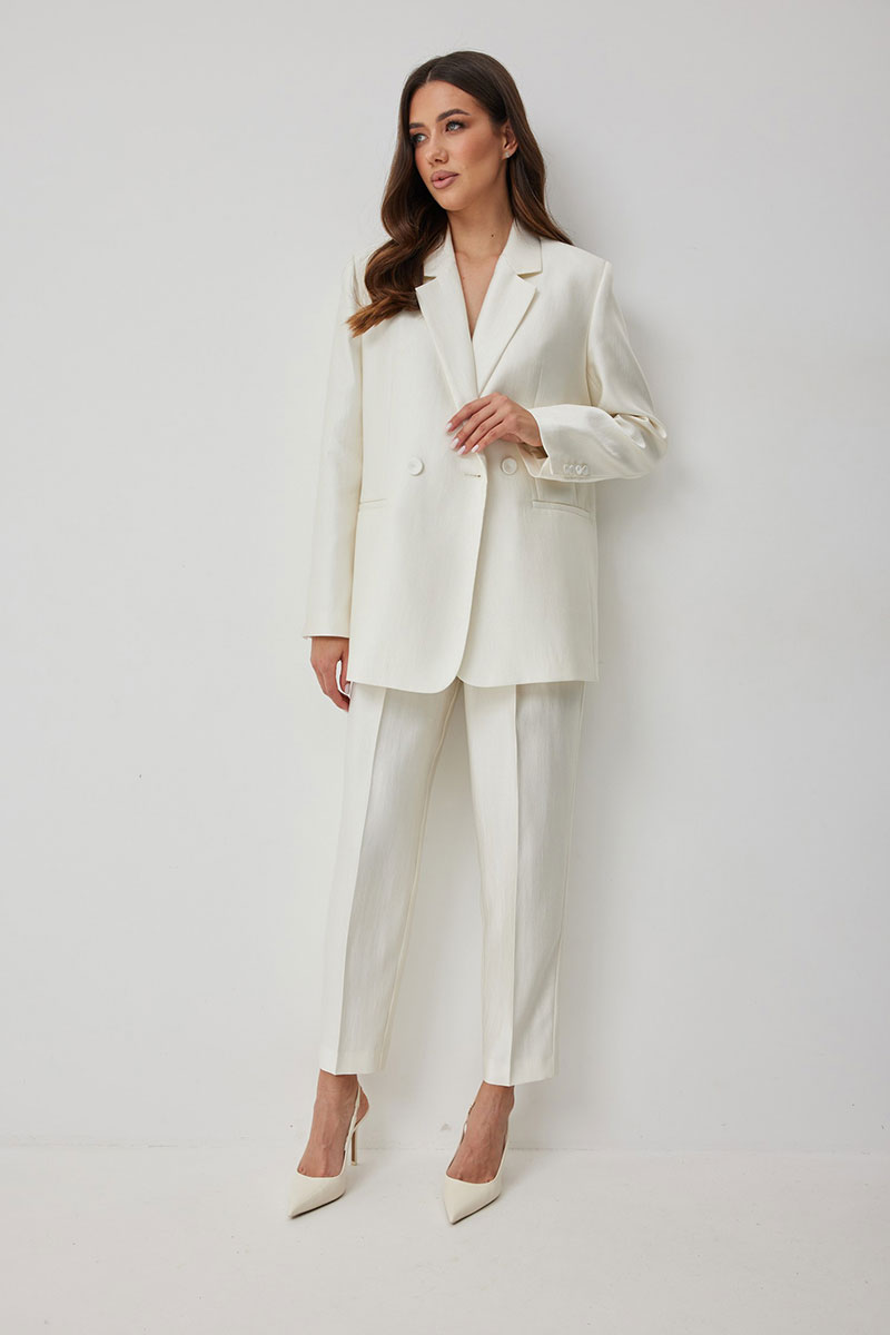 Стильные женские брюки, выполнены из ткани «люмина» с блеском. Брюки чуть зауженные к низу. Пояс притачной со шлевками с застежкой на пуговицу и тесьму-молнию в гульфике. Удобство обеспечивают функциональные карманы с отрезным бочком в боковых швах. По переду заложены встречные складки. Для идеального праздничного образа комбинируйте брюки с жакетом М669.