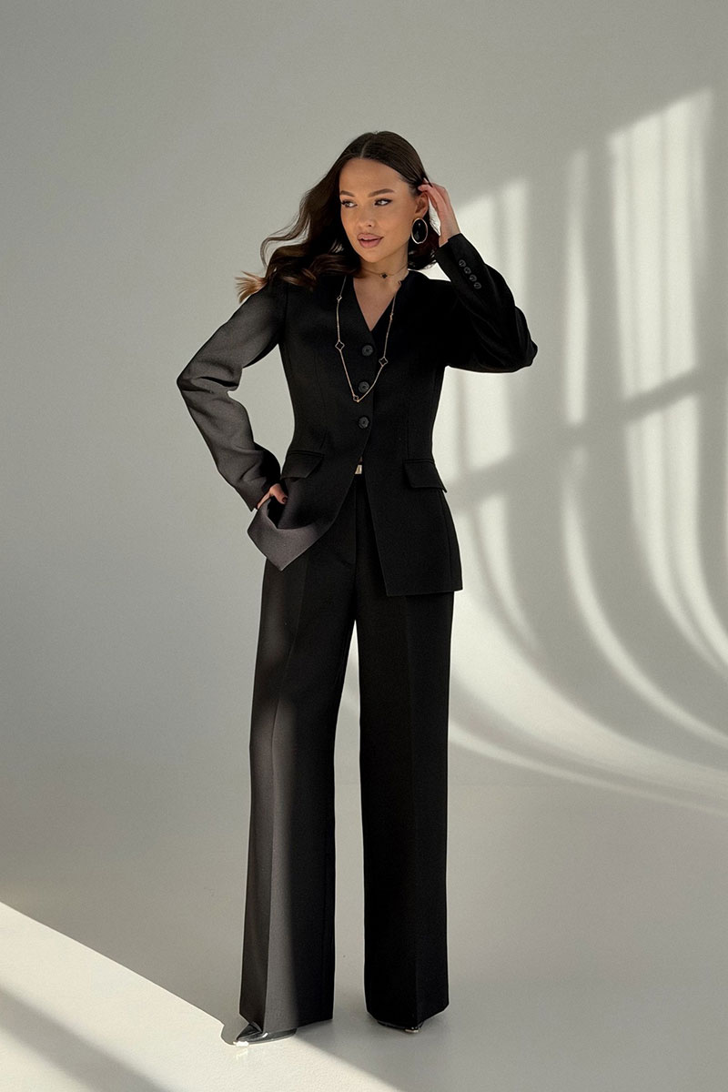 Элегантные женские брюки прямого классического кроя выполнены из текстильной ткани и станут безупречной основой вашего гардероба. Пояс притачной с застежкой на крючки и тесьму-молнию в гульфике. По переду в боковых швах функциональные карманы с отрезным бочком. По передним полотнищам заутюжены стрелки, которые визуально стройнят и удлиняют ноги. Эти брюки станут незаменимой основой для вашего делового, офисного или вечернего образа. На фото модель представлена в комплекте с жакетом 674.