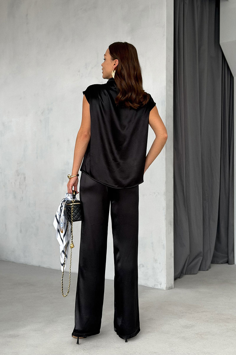 Женские брюки прямого силуэта — стильный и комфортный выбор для повседневных образов. Модель выполнена из вискозной ткани с блеском. Верх брюк на резинке. В боковых швах функциональные карманы. Низ брюк с широкой подгибкой. Эти брюки идеально подойдут для создания как расслабленных повседневных луков, так и более нарядных сочетаний.