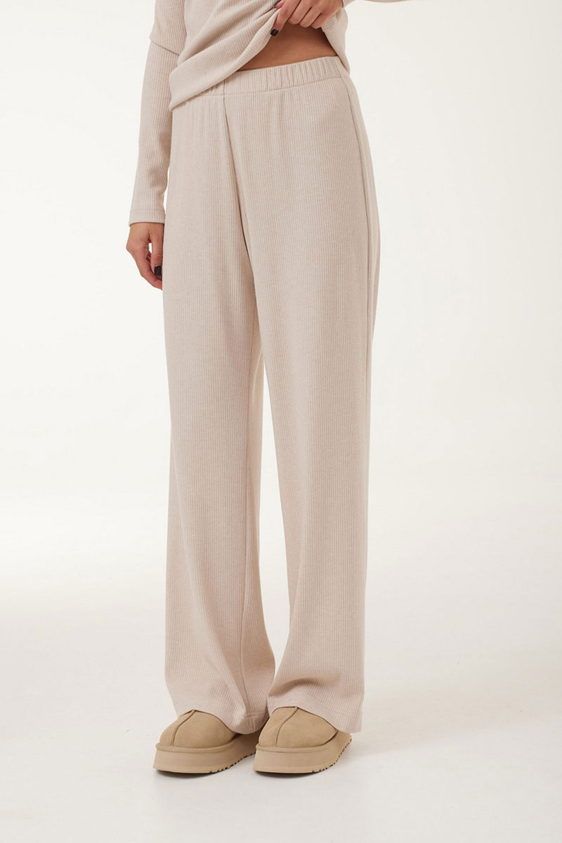Брюки прямого силуэта, пояс на резинке, без карманов.