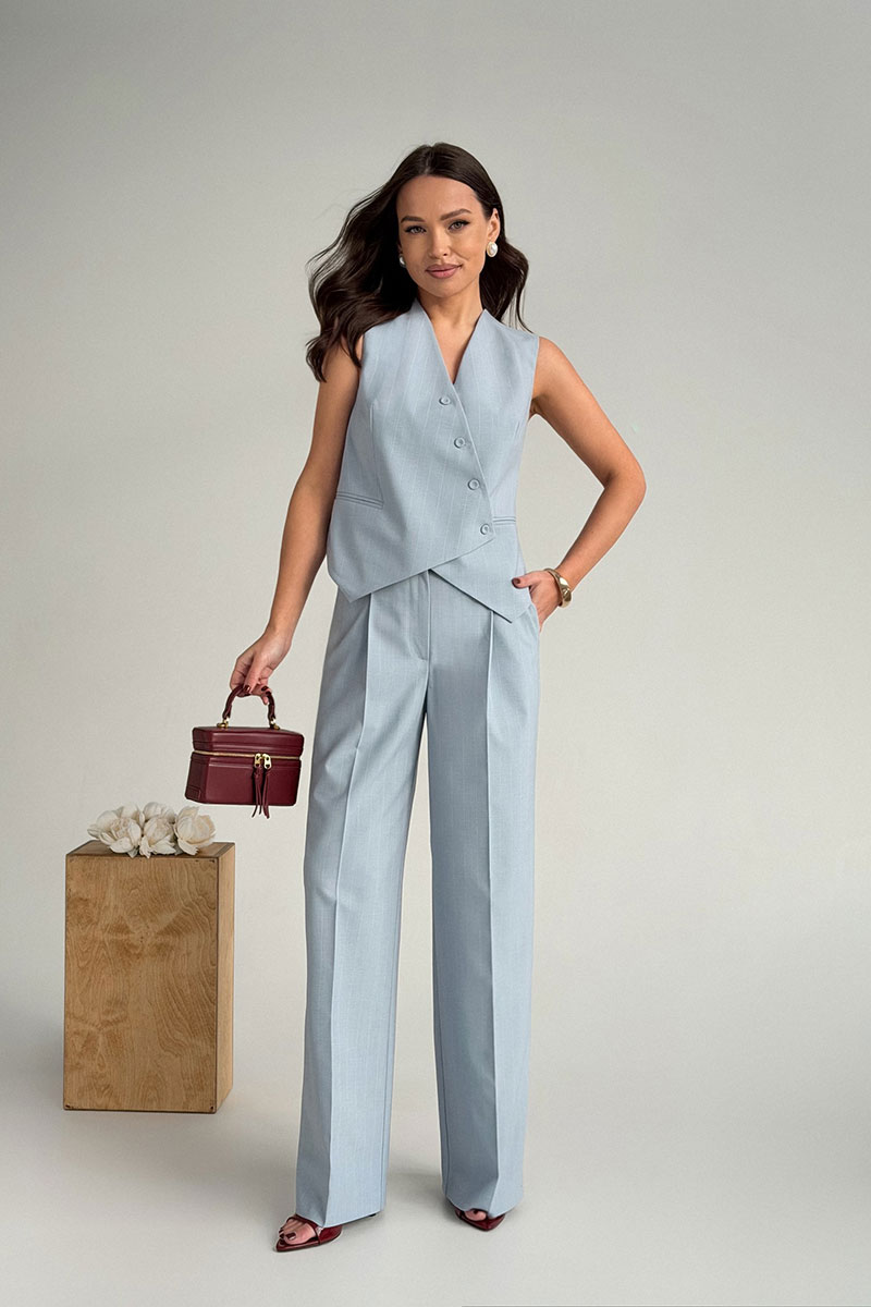 Укороченный женский жилет прямого силуэта. Модель выполнена из качественной костюмной ткани на поливискозной подкладке. Вырез горловины V-образный. Застежка асимметричная, на петли и пуговицы. По полочке на уровне талии карманы в рамку. Низ жилета фигурный, с двумя углами. Спинка со средним швом. Этот жилет идеален для создания стильных офисных образов или элегантных повседневных луков. Отлично сочетается с классическими брюками, юбками-карандашами и облегающими платьями. На фото с брюками М389.