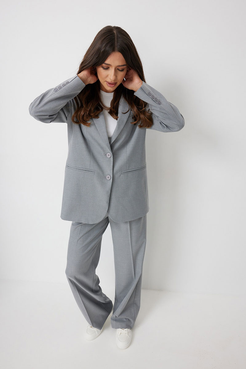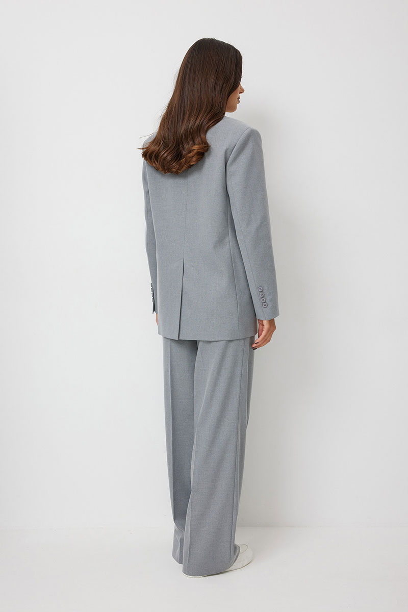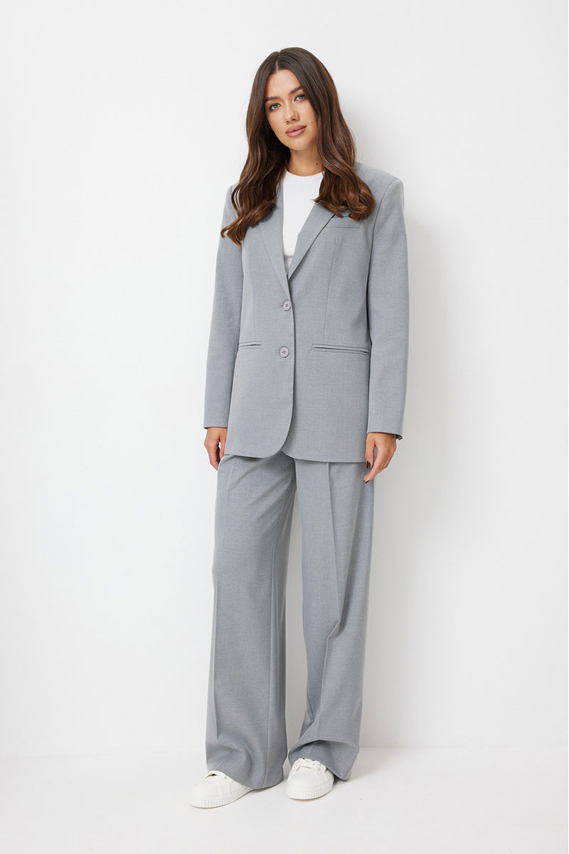 Жакет женский прямого силуэта, выполнен из костюмной ткани. Жакет свободного кроя, на подкладке. Застежка однобортная на две петли и пуговицы. Воротник пиджачный с лацканами. По