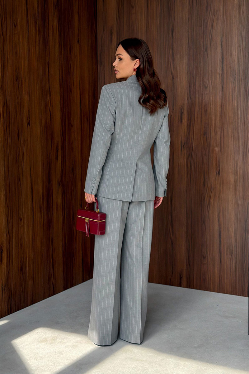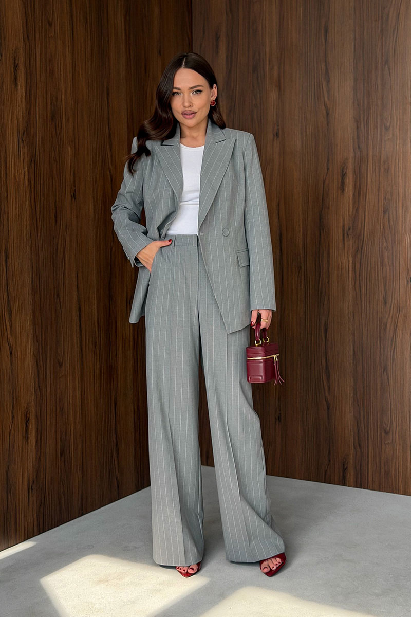 Классический женский жакет полуприлегающего силуэта, выполнен из костюмной ткани с поливискозной подкладкой. Жакет полуприлегающего силуэта. Застежка центральная двубортная, на одну