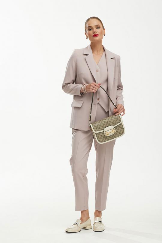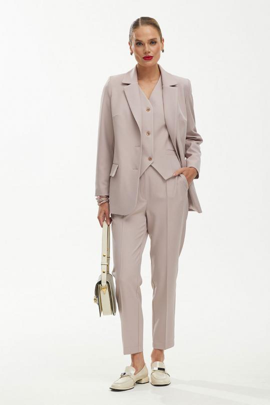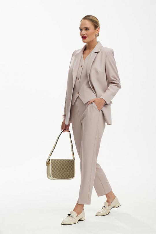 Пудровый женский роскошный костюм-тройка, состоящий из жакета, жилета и брюк - это идеальный выбор для стильной и уверенной женщины. Он добавит женственности и изысканности к любому образу, подчеркивая легкость и изящность фигуры. Костюм подойдёт как для деловых встреч, так и для особых мероприятий, где важно выглядеть безупречно, привлекая восхищенные взгляды окружающих на любом празднике!