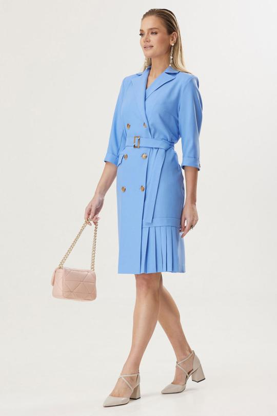 Платье женское полуприлегающего силуэта, выполненное из поливискозы плательной группы. Платье с двухбортной застежкой на петли-пуговицы. Горловина оформлена воротником пиджачного