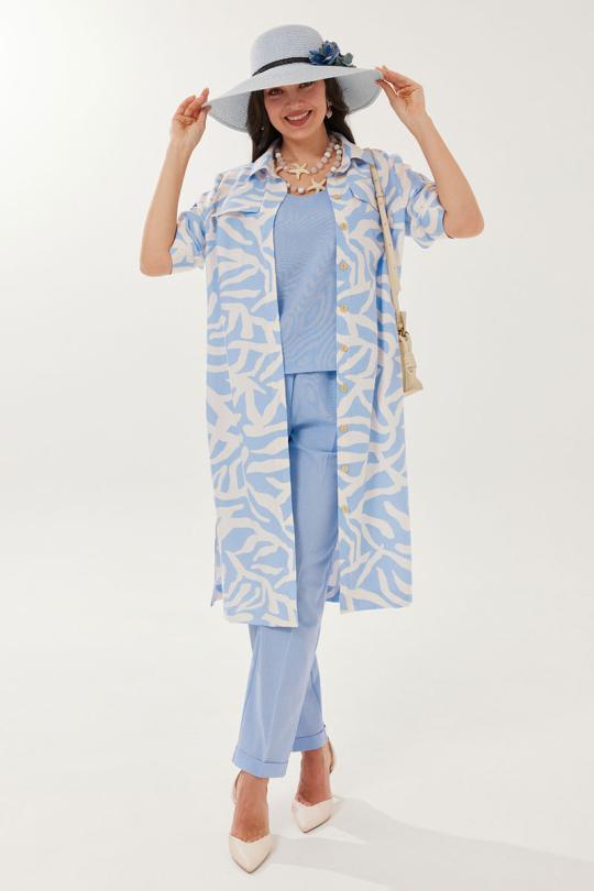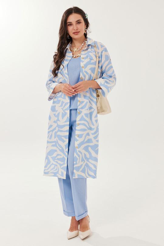 Костюм женский 3-х предметный, состоящий из блузы, брюк и топа.