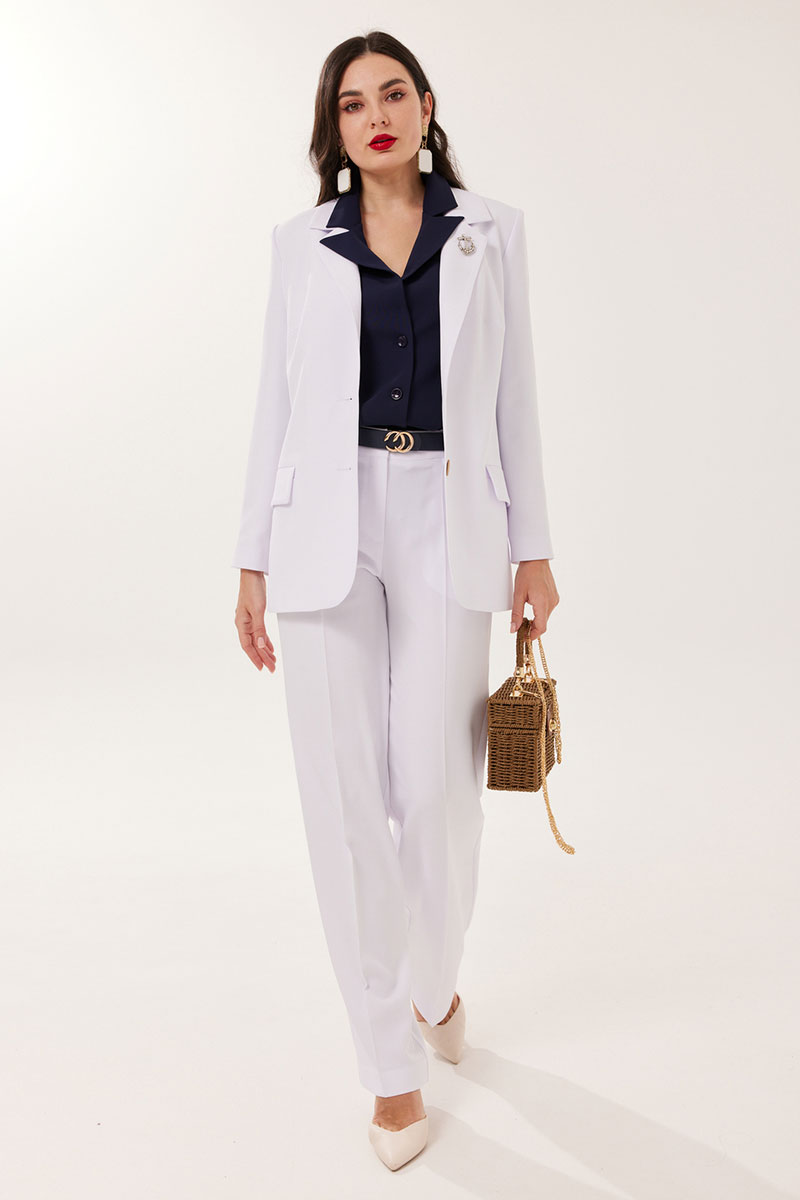 Брюки классической формы, прямого силуэта, со стрелками по передним и задним половинкам. Верхний срез обработан обтачным поясом, дополнен практичными шлевками для ремня. На задних