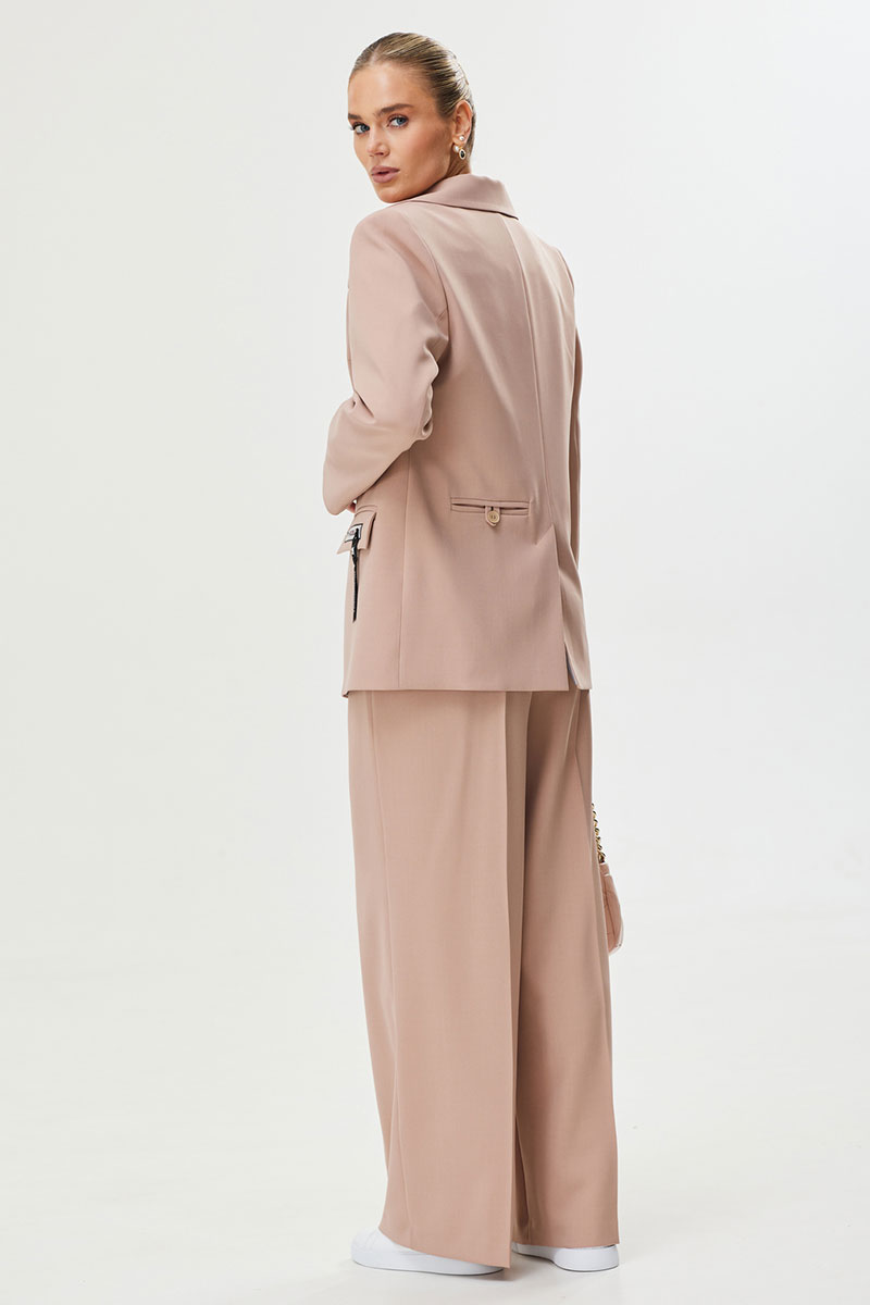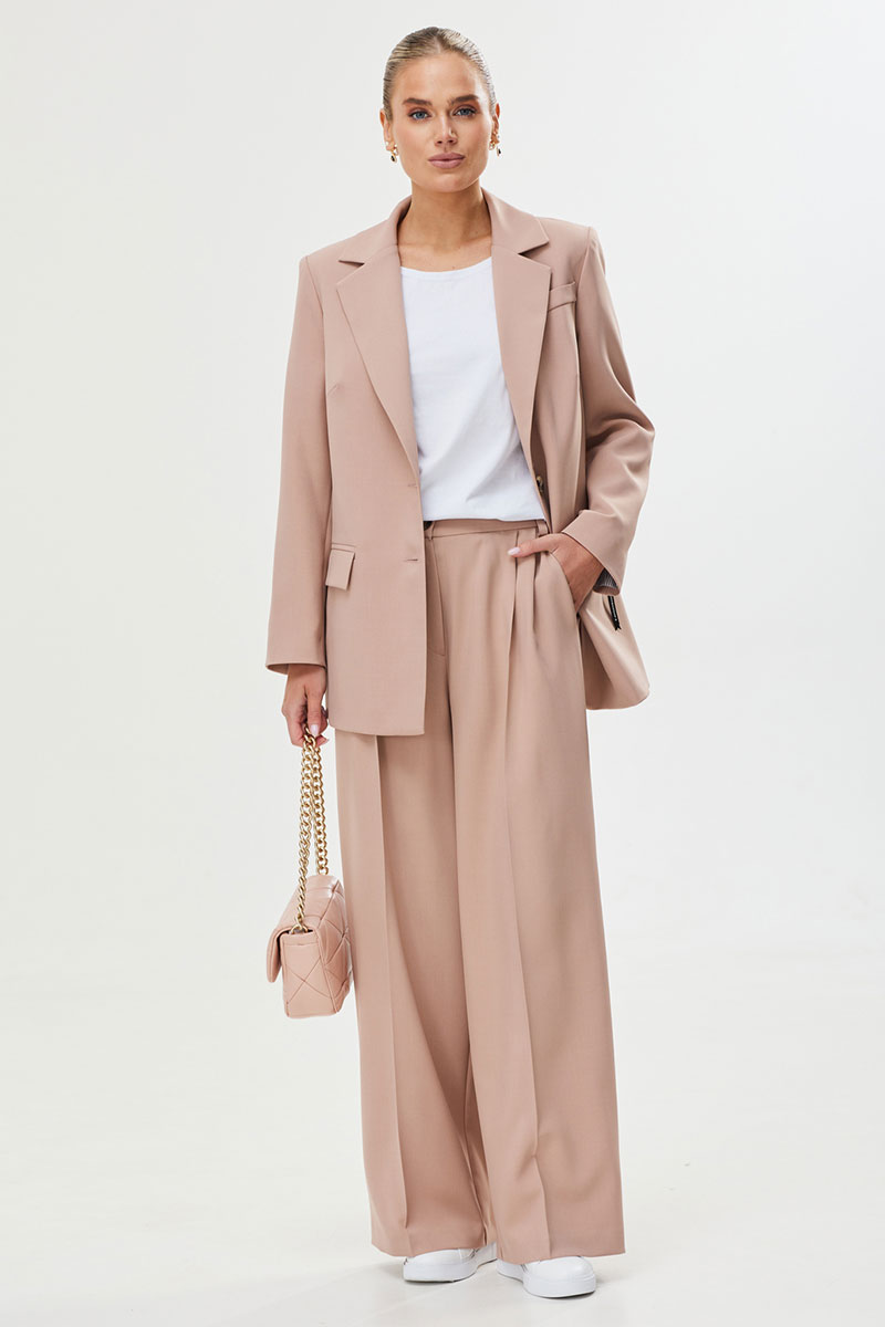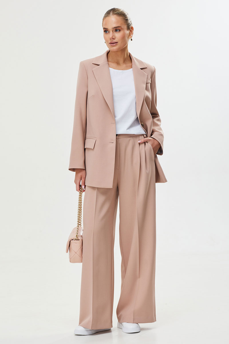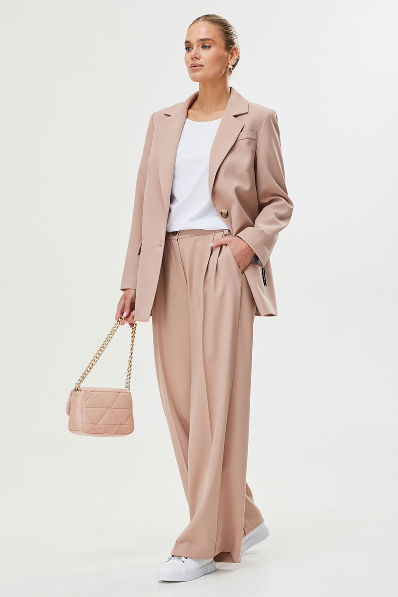 - Состав: жакет и брюки: вискоза 70%; полиэстер 25%; вискоза 5%; футболка: хлопок 95%; эластан 5%