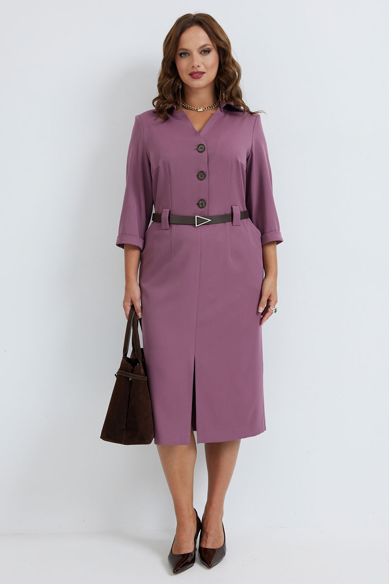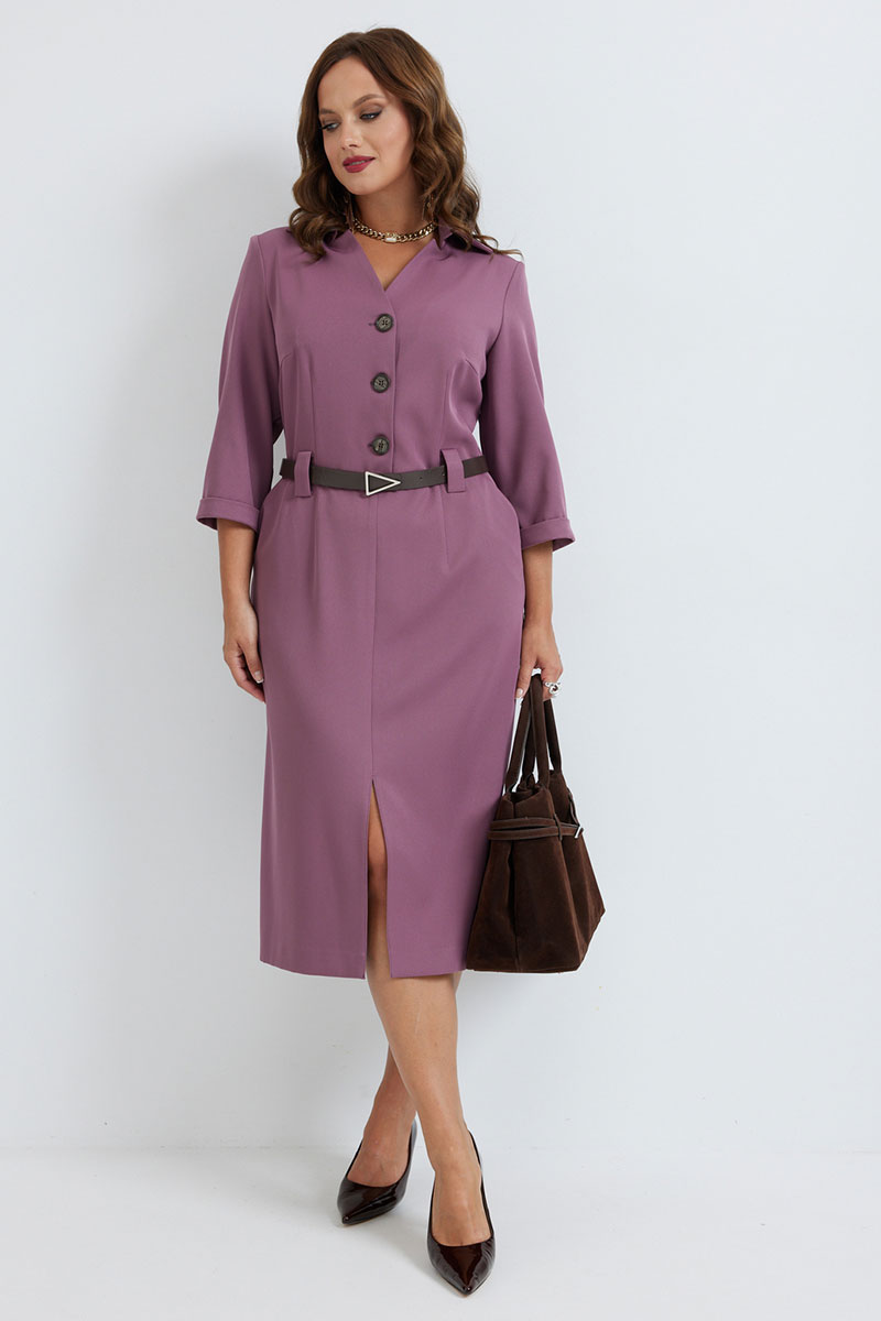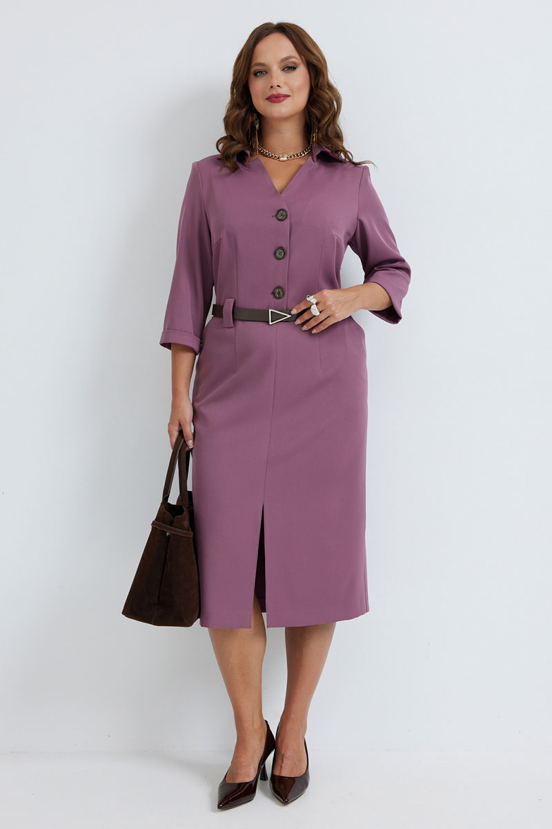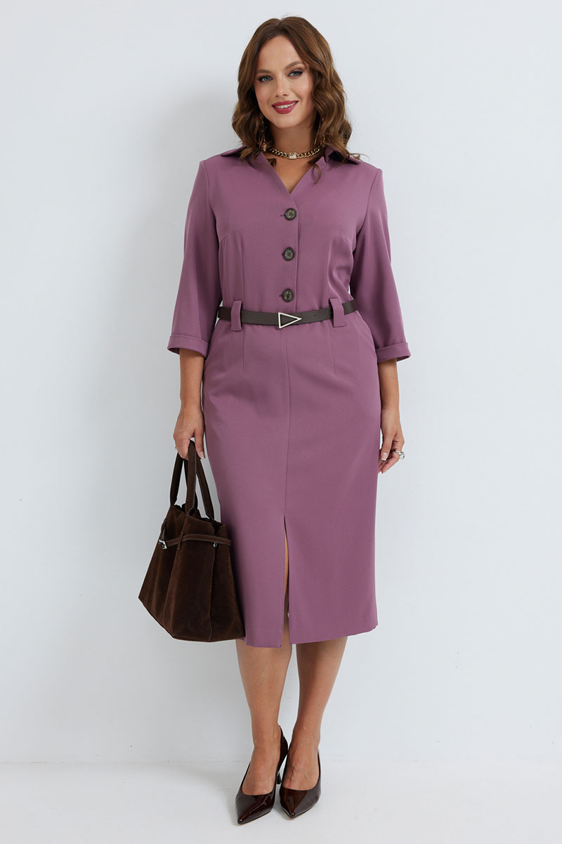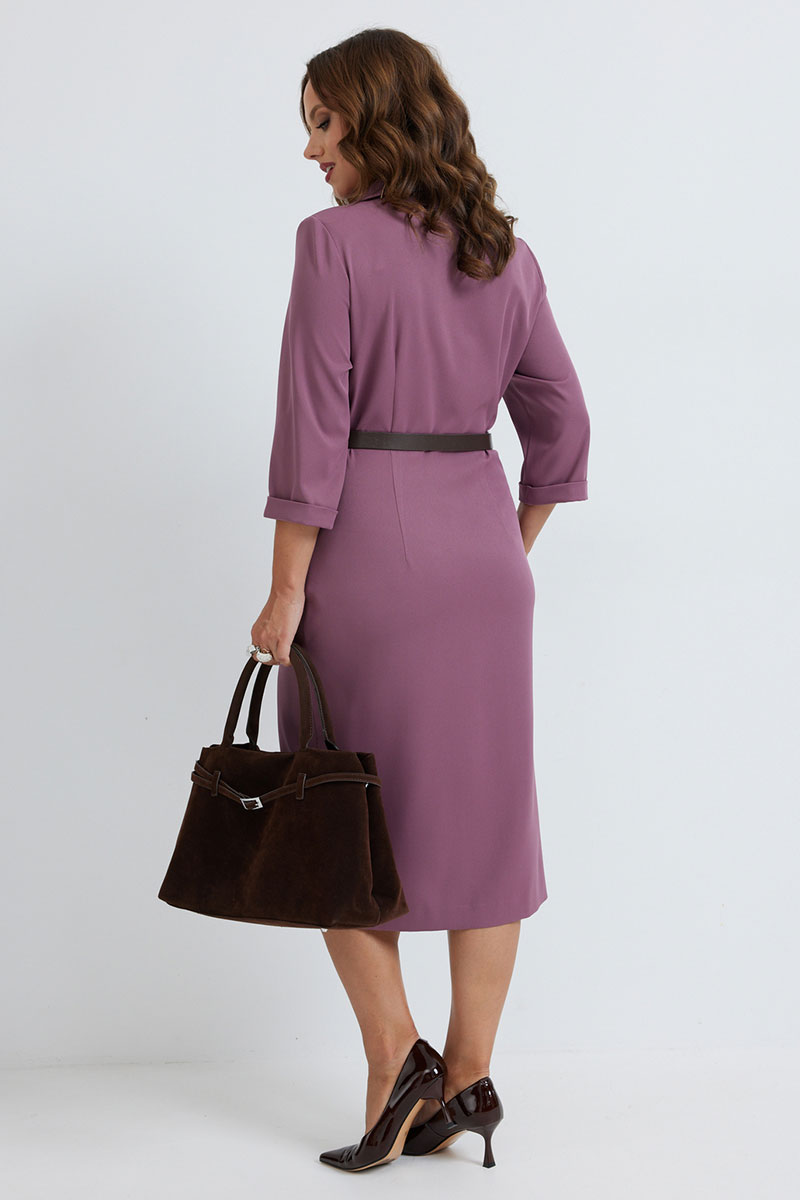 бедер обработаны карманы. Рукав втачной, с цельнокроеной манжетой, длиной 3/4. В комплект к платью входит контрастный ремень с декоративной пряжкой.