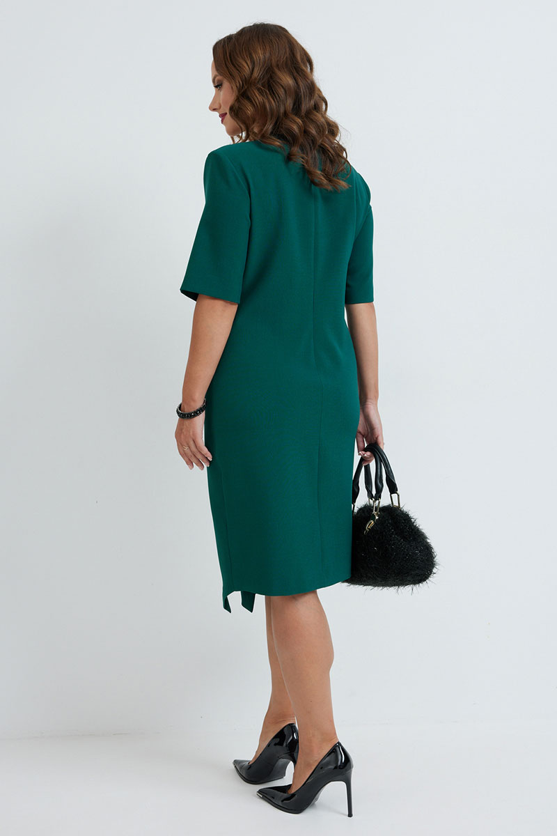 молнией в среднем шве. Рукав втачной, длиной до линии локтя. В комплект к платью входит декоративная подвеска.